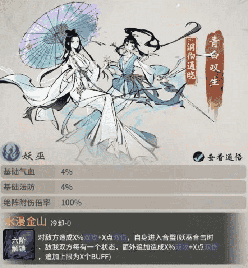 西湖踏春,,,未曾想竟卷入到青白蛇故事中。。青蛇与白蛇本是修道有成的小妖,,,,两人在西湖边上开了间医馆,,,济世救民,,,不料沾惹人世因果,,,,遭高僧误解。。。。白蛇被镇压于雷峰塔下,,,侥幸逃脱的青蛇则在三界奔波,,,只为早日寻得解救白蛇之法。。。。如今千年已过,,高僧云游四海,,,雷峰塔封印松动,,而青蛇亦寻得强力古宝,,意欲趁此机会解救出姐姐……若仙友有幸与青白双生结识,,,,即可习得其绝技·水漫金山,,对敌方造成双攻伤害,,,于修炼大有助益。。