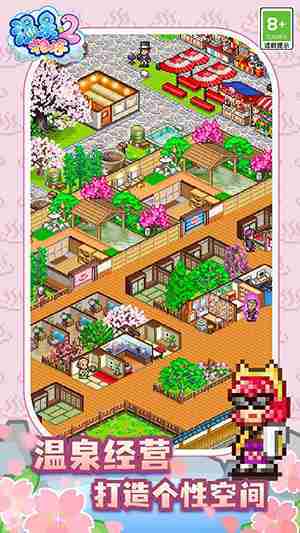 《温泉物语2》是一款模拟经营温泉旅馆的游戏。。。。玩家可以建设客房和店铺,,,招揽客人,,,挖掘温泉,,打造专属温泉乡,,,,成为受全世界瞩目的温泉旅馆。。通过游戏,,,让大家活力十足地面对明天吧!!