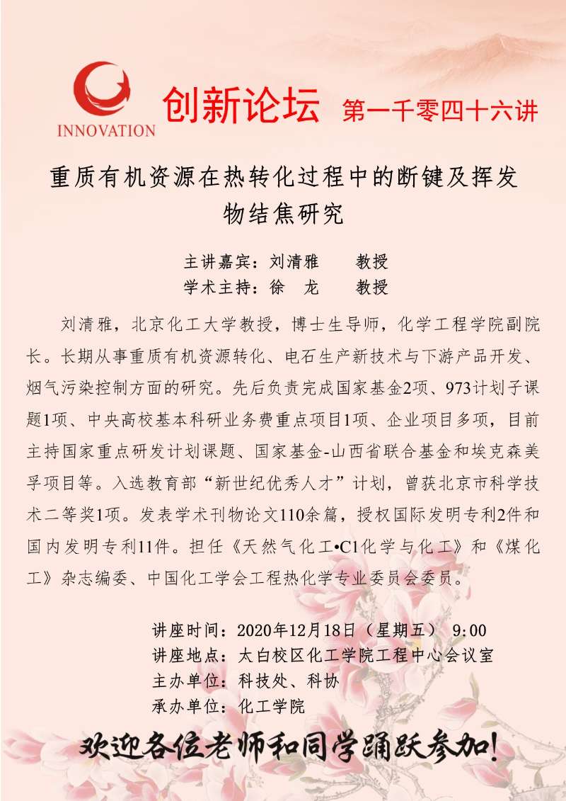 刘清雅 教授 必赢3003no1线路检测中心创新论坛第一千零四十六讲:重质有机资源在热转化过程中的断键及挥发物结焦研究 讲座时间 2020年12月18日(星期五) 9:00 讲座地点 太白校区化工学院工程中心会议室 讲座人介绍 刘清雅 教授 讲座内容
