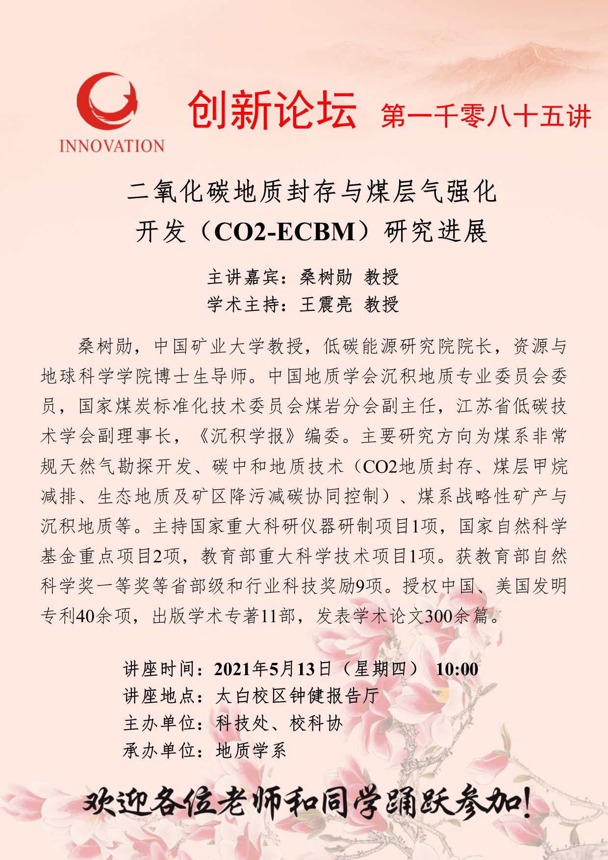 桑树勋 教授 必赢3003no1线路检测中心创新论坛第一千零八十五讲:二氧化碳地质封存与煤层气强化开发(CO2-ECBM)研究进展 讲座时间 2021年5月13日(星期四) 10:00 讲座地点 太白校区钟健报告厅 讲座人介绍 桑树勋 教授 讲座内容