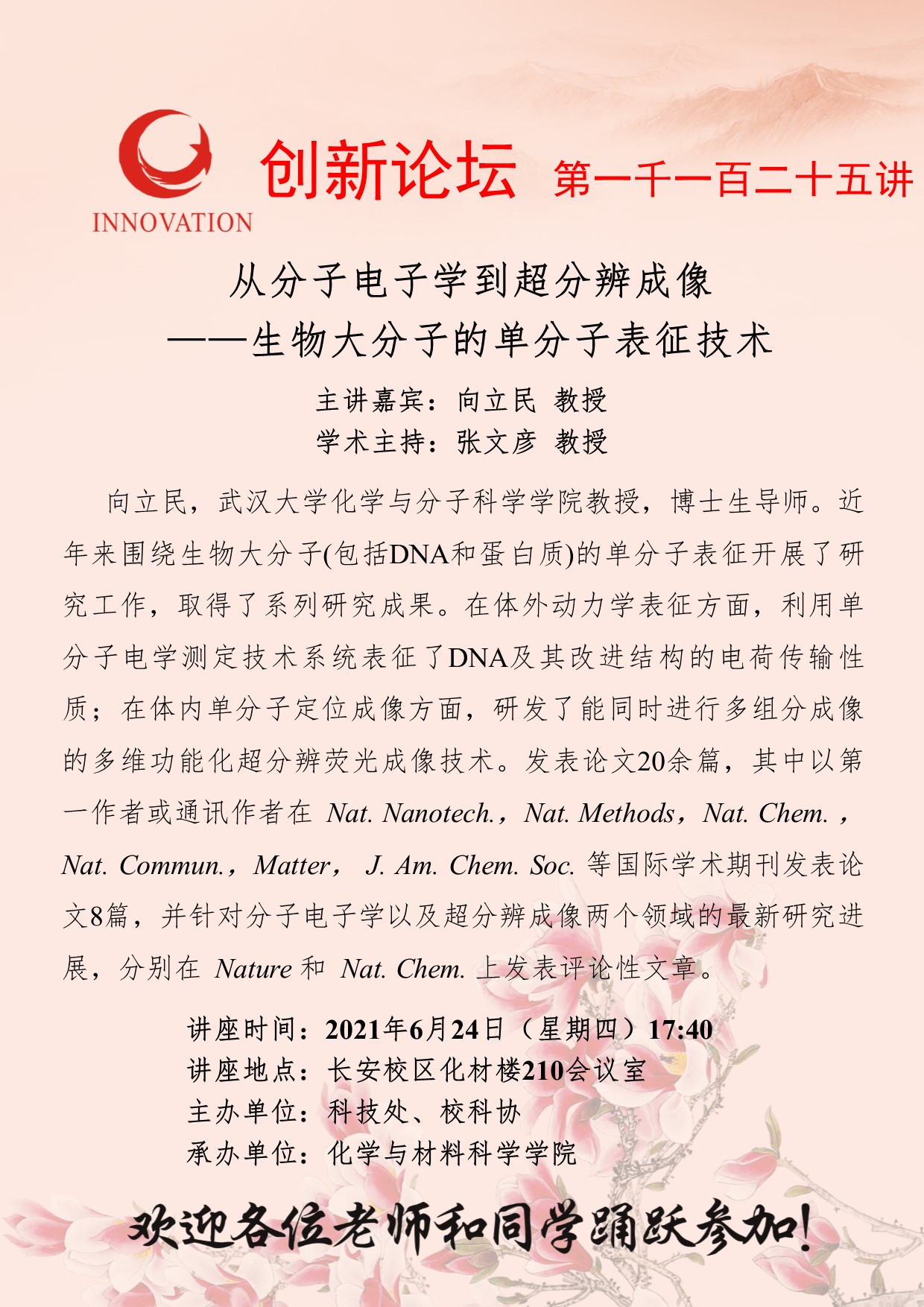 向立民 教授 必赢3003no1线路检测中心创新论坛第一千一百二十五讲:从分子电子学到超分辨成像——生物大分子的单分子表征技术 讲座时间 2021年6月24日(星期四)17:40 讲座地点 长安校区化材楼210会议室 讲座人介绍 向立民 教授 讲座内容