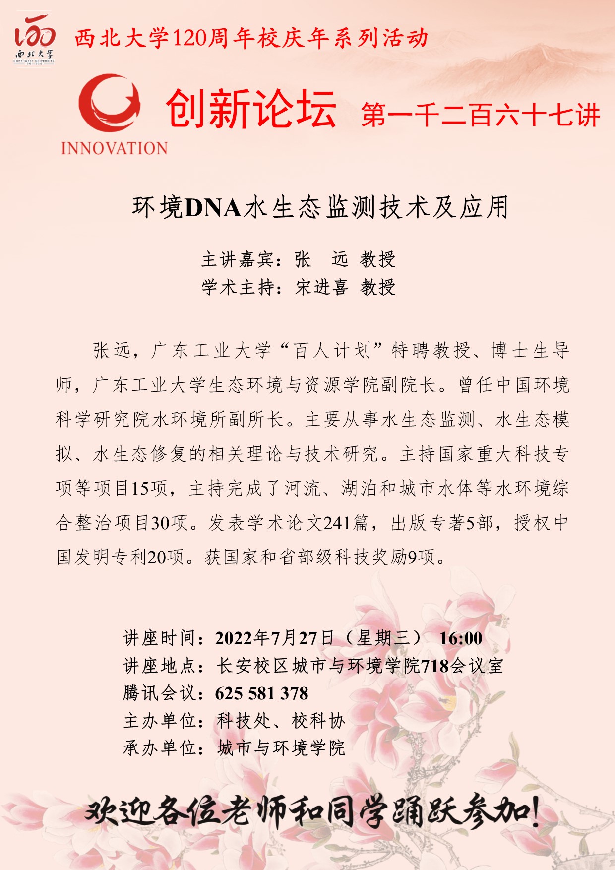 张 远 教授 必赢3003no1线路检测中心创新论坛第一千二百六十七讲暨120周年校庆年系列活动:环境DNA水生态监测技术及应用 讲座时间 2022年7月27日(星期三) 16:00 讲座地点 腾讯会议 625 581 378 讲座人介绍 张 远 教授 讲座内容