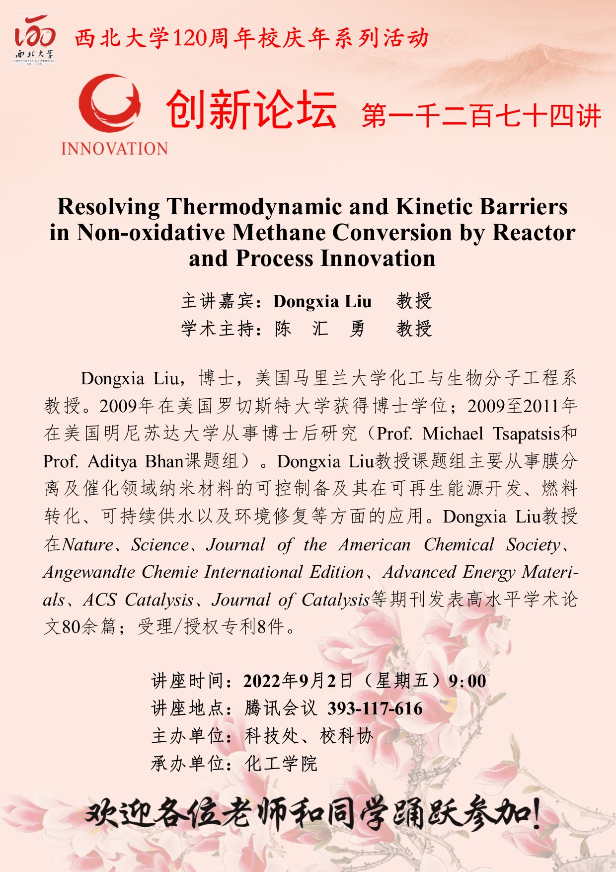 Dongxia Liu 教授 必赢3003no1线路检测中心创新论坛第一千二百七十四讲暨120周年校庆年系列活动:Resolving Thermodynamic and Kinetic Barriers in Non-oxidative Methane Conversion by Reactor and Process Innovation 讲座时间 2022年9月2日(星期五)9:00 讲座地点 腾讯会议 393-117-616 讲座人介绍 Dongxia Liu 教授 讲座内容