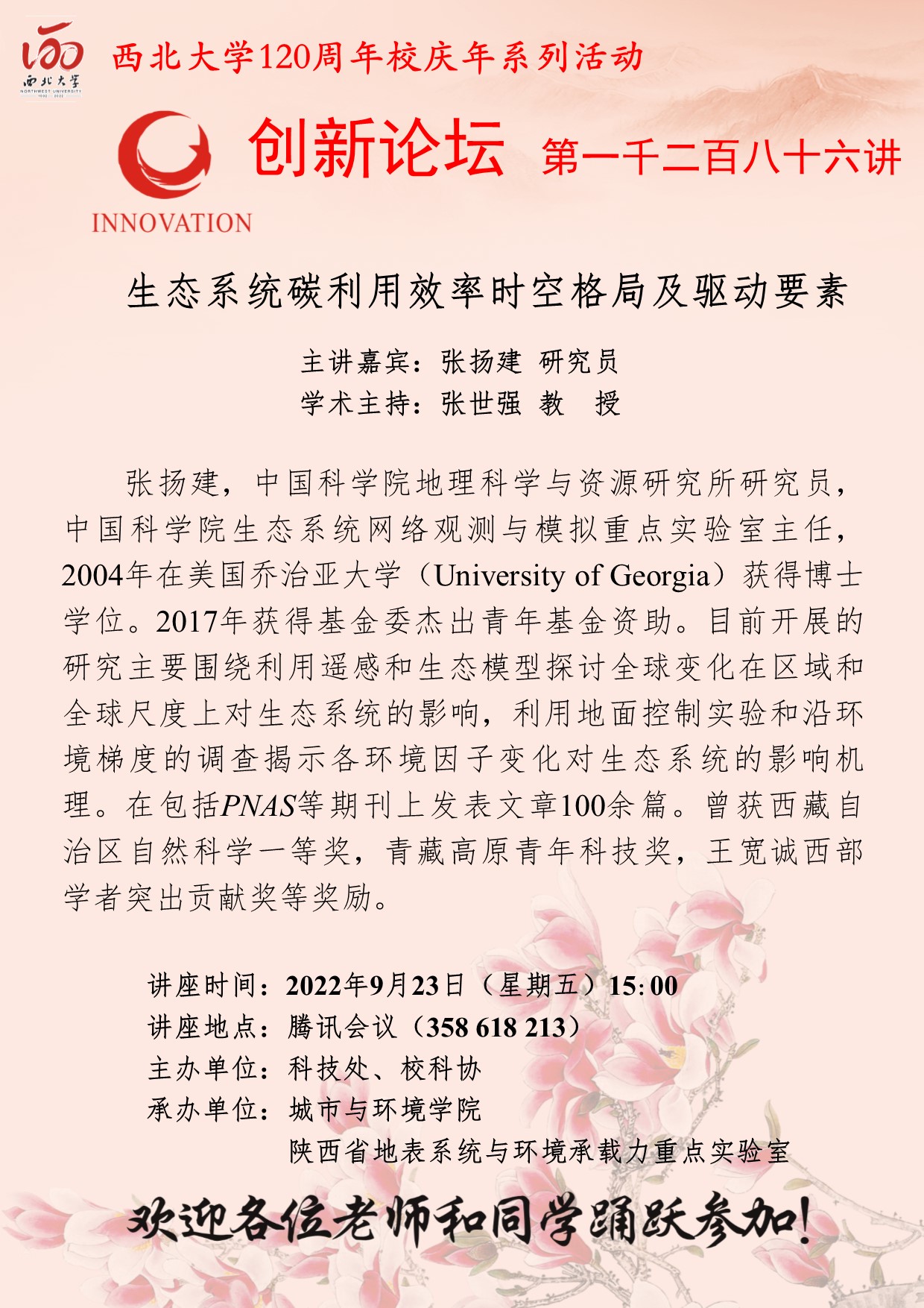 张扬建 研究员 必赢3003no1线路检测中心创新论坛第一千二百八十六讲暨120周年校庆年系列活动::生态系统碳利用效率时空格局及驱动要素 讲座时间 2022年9月23日(星期五)15:00 讲座地点 腾讯会议(358 618 213) 讲座人介绍 张扬建 研究员 讲座内容