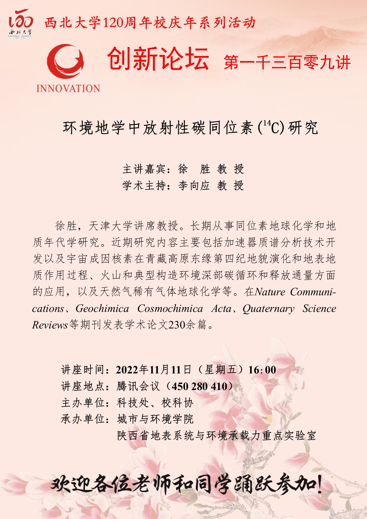 徐胜 教授 必赢3003no1线路检测中心创新论坛第一千三百零九讲暨120周年校庆年系列活动: 环境地学中放射性碳同位素(14C)研究 讲座时间 2022年11月11日(星期五)16:00 讲座地点 腾讯会议(450 280 410) 讲座人介绍 徐胜 教授 讲座内容