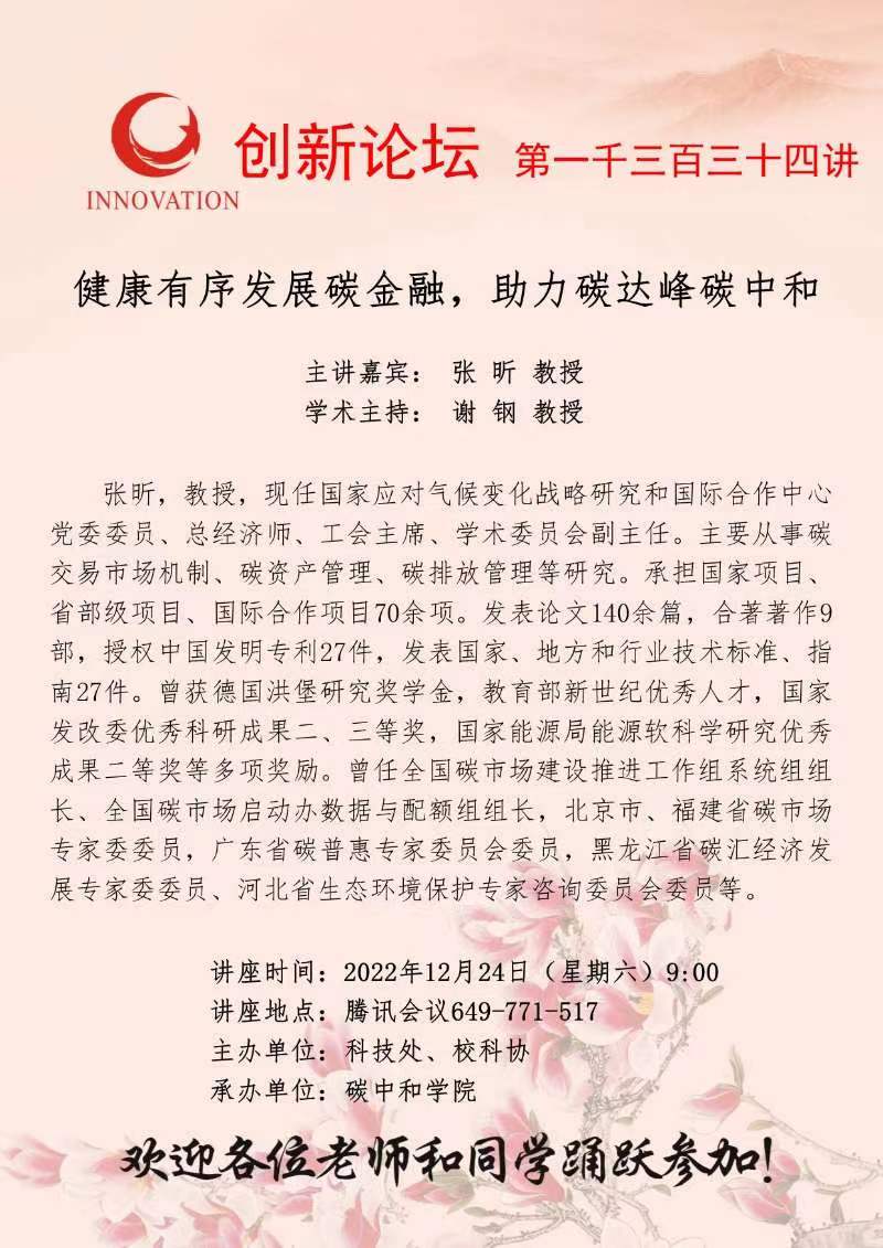 张昕 教授 必赢3003no1线路检测中心创新论坛第一千三百三十四讲:健康有序发展碳金融,助力碳达峰碳中和 讲座时间 2022年12月24日(星期六)9:00 讲座地点 腾讯会议649-771-517 讲座人介绍 张昕 教授 讲座内容