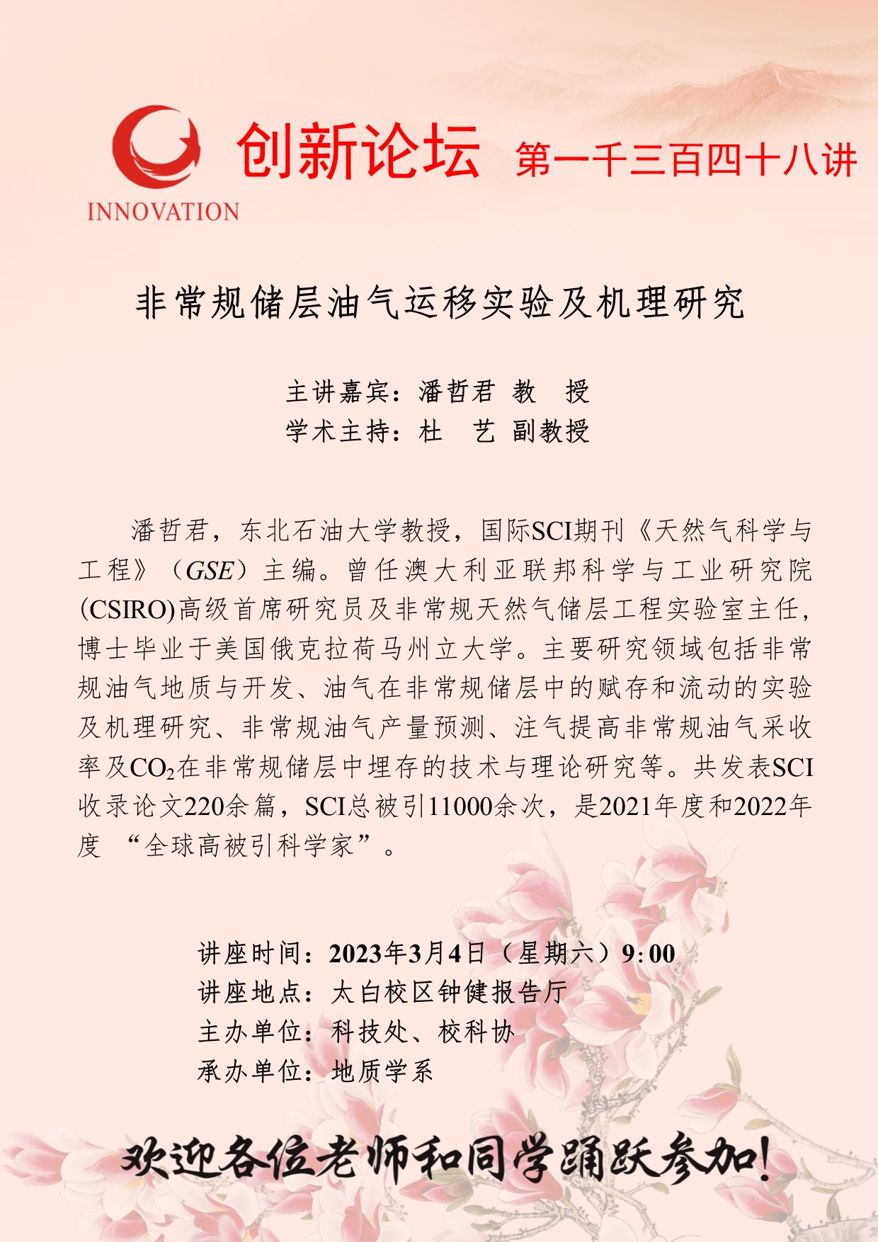 潘哲君 教授 必赢3003no1线路检测中心创新论坛第一千三百四十八讲:非常规储层油气运移实验及机理研究 讲座时间 2023年3月4日(星期六)9:00 讲座地点 太白校区钟健报告厅 讲座人介绍 潘哲君 教授 讲座内容