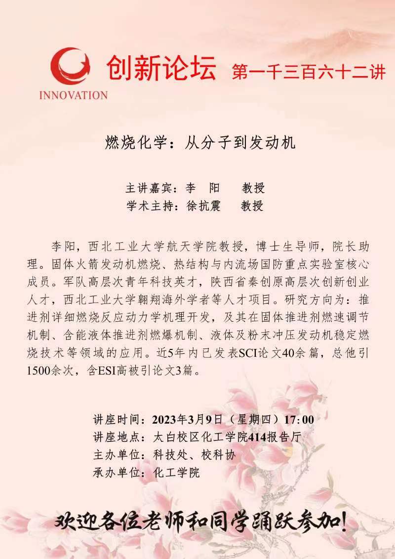 李阳 教授 必赢3003no1线路检测中心创新论坛第一千三百六十二讲:燃烧化学:从分子到发动机 讲座时间 2023年3月9日(星期四)17:00 讲座地点 太白校区化工学院414报告厅 讲座人介绍 李阳 教授 讲座内容