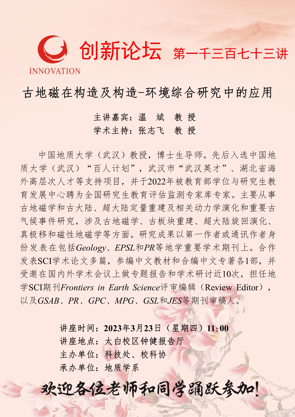温斌 教授 必赢3003no1线路检测中心创新论坛第一千三百七十三讲:古地磁在构造及构造-环境综合研究中的应用 讲座时间 2023年3月23日(星期四)11:00 讲座地点 太白校区钟健报告厅 讲座人介绍 温斌 教授 讲座内容