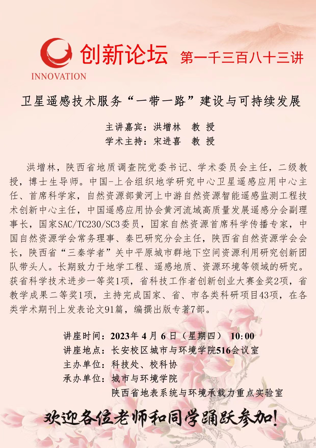 洪增林 教 授 必赢3003no1线路检测中心创新论坛第一千三百八十三讲:卫星遥感技术服务“一带一路”建设与可持续发展 讲座时间 2023年 4 月 6 日(星期四) 10:00 讲座地点 长安校区城市与环境学院516会议室 讲座人介绍 洪增林 教 授 讲座内容