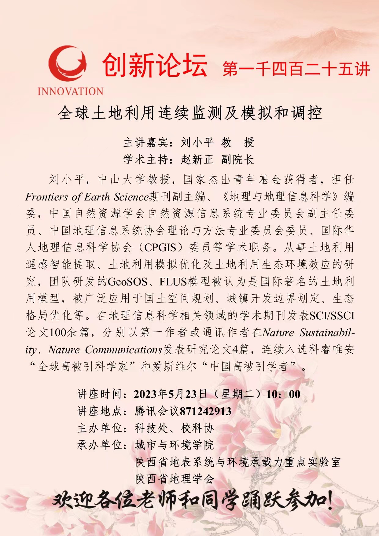 刘小平 教授 必赢3003no1线路检测中心创新论坛第一千四百二十五讲:全球土地利用连续监测及模拟和调控优化 讲座时间 2023年5月23日(星期二)10:00 讲座地点 腾讯会议871242913 讲座人介绍 刘小平 教授 讲座内容