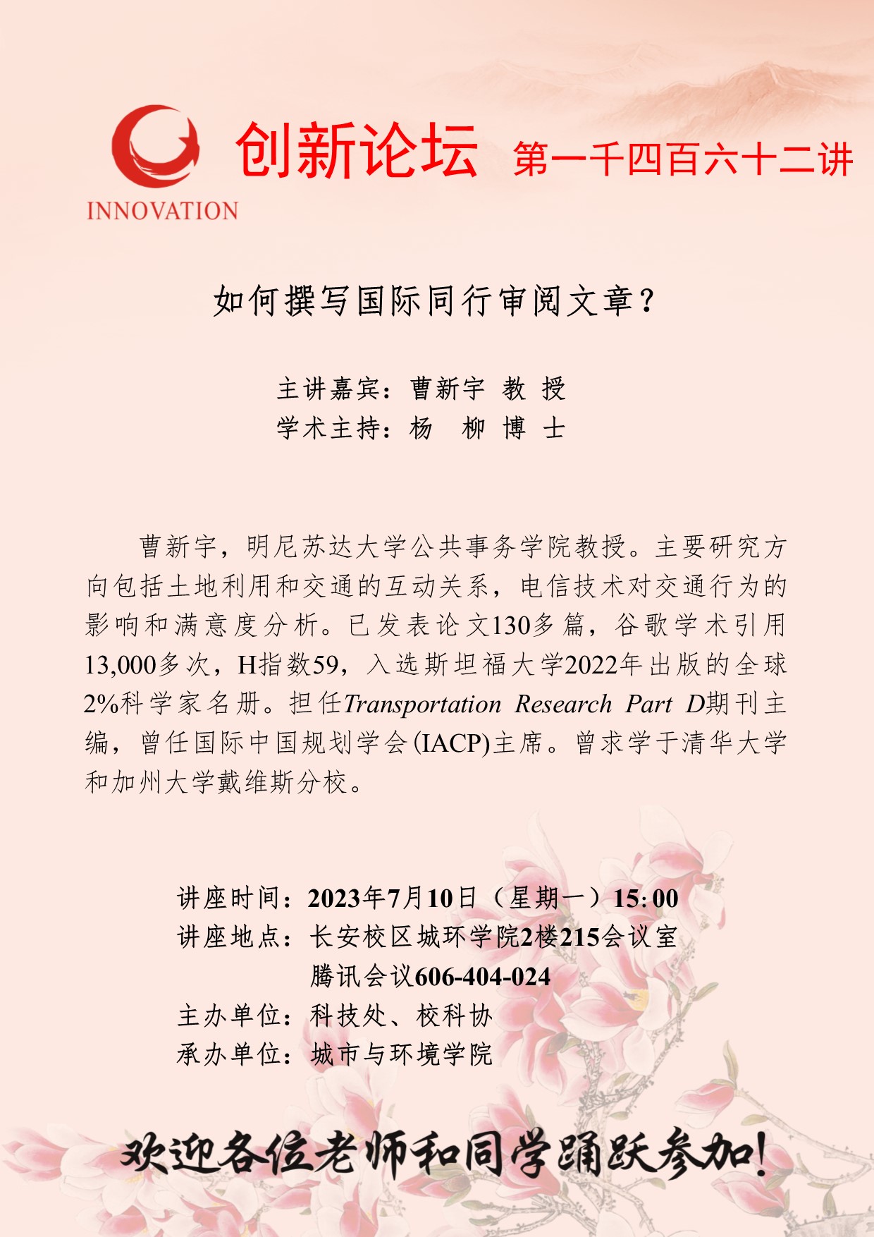 曹新宇 教授 必赢3003no1线路检测中心创新论坛第一千四百六十二讲:如何撰写国际同行审阅文章? 讲座时间 2023年7月10日(星期一)15:00 讲座地点 长安校区城环学院2楼215会议室 讲座人介绍 曹新宇 教授 讲座内容