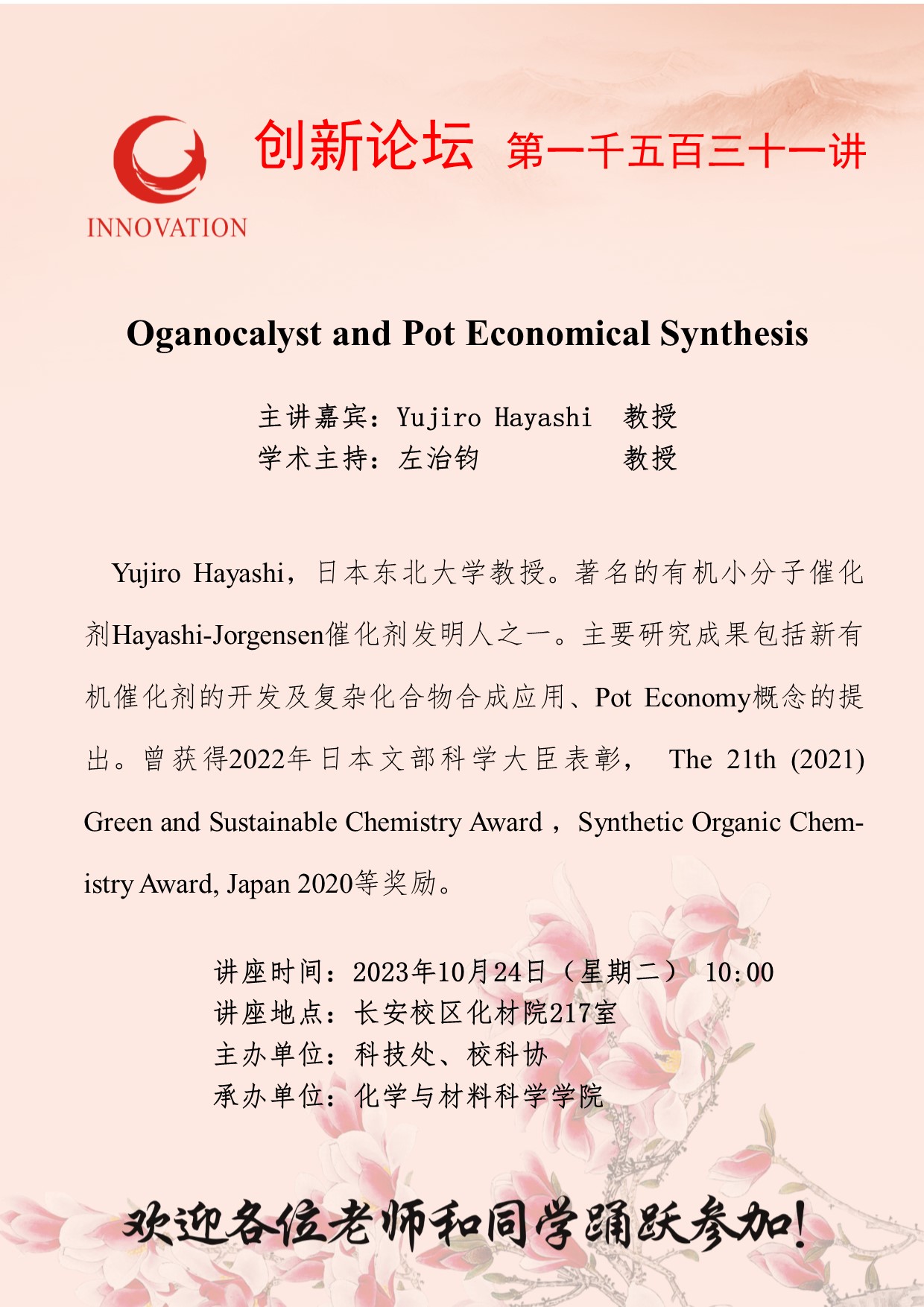 Yujiro Hayashi 教授 必赢3003no1线路检测中心创新论坛第一千五百三十一讲:Oganocalyst and Pot Economical Synthesis 讲座时间 2023年10月24日(星期二) 10:00 讲座地点 长安校区化材院217室 讲座人介绍 Yujiro Hayashi 教授 讲座内容