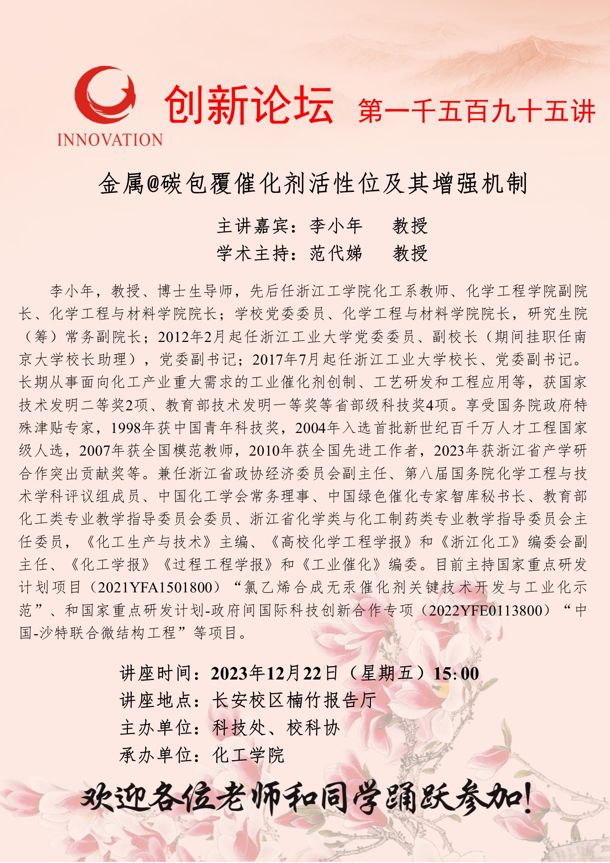 李小年 教授 必赢3003no1线路检测中心创新论坛第一千五百九十五讲:金属@碳包覆催化剂活性位及其增强机制 讲座时间 2023年12月22日(星期五)15:00 讲座地点 长安校区楠竹报告厅 讲座人介绍 李小年 教授 讲座内容