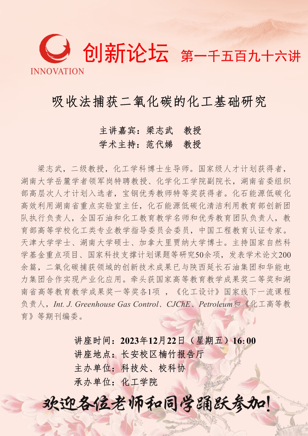 梁志武 教授 必赢3003no1线路检测中心创新论坛第一千五百九十六讲:吸收法捕获二氧化碳的化工基础研究 讲座时间 2023年12月22日(星期五)16:00 讲座地点 长安校区楠竹报告厅 讲座人介绍 梁志武 教授 讲座内容