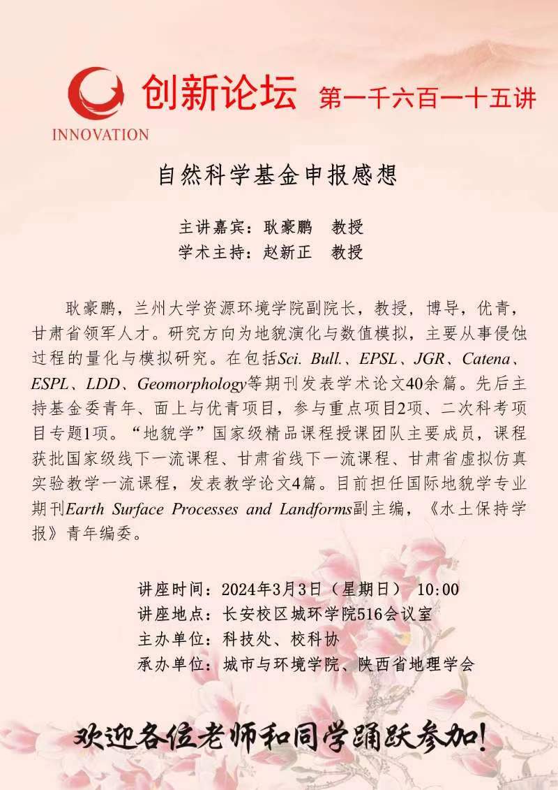 耿豪鹏 教授 必赢3003no1线路检测中心创新论坛第一千六百一十五讲:自然科学基金申报感想 讲座时间 2024年3月3日(星期日) 10:00 讲座地点 长安校区城环学院516会议室 讲座人介绍 耿豪鹏 教授 讲座内容