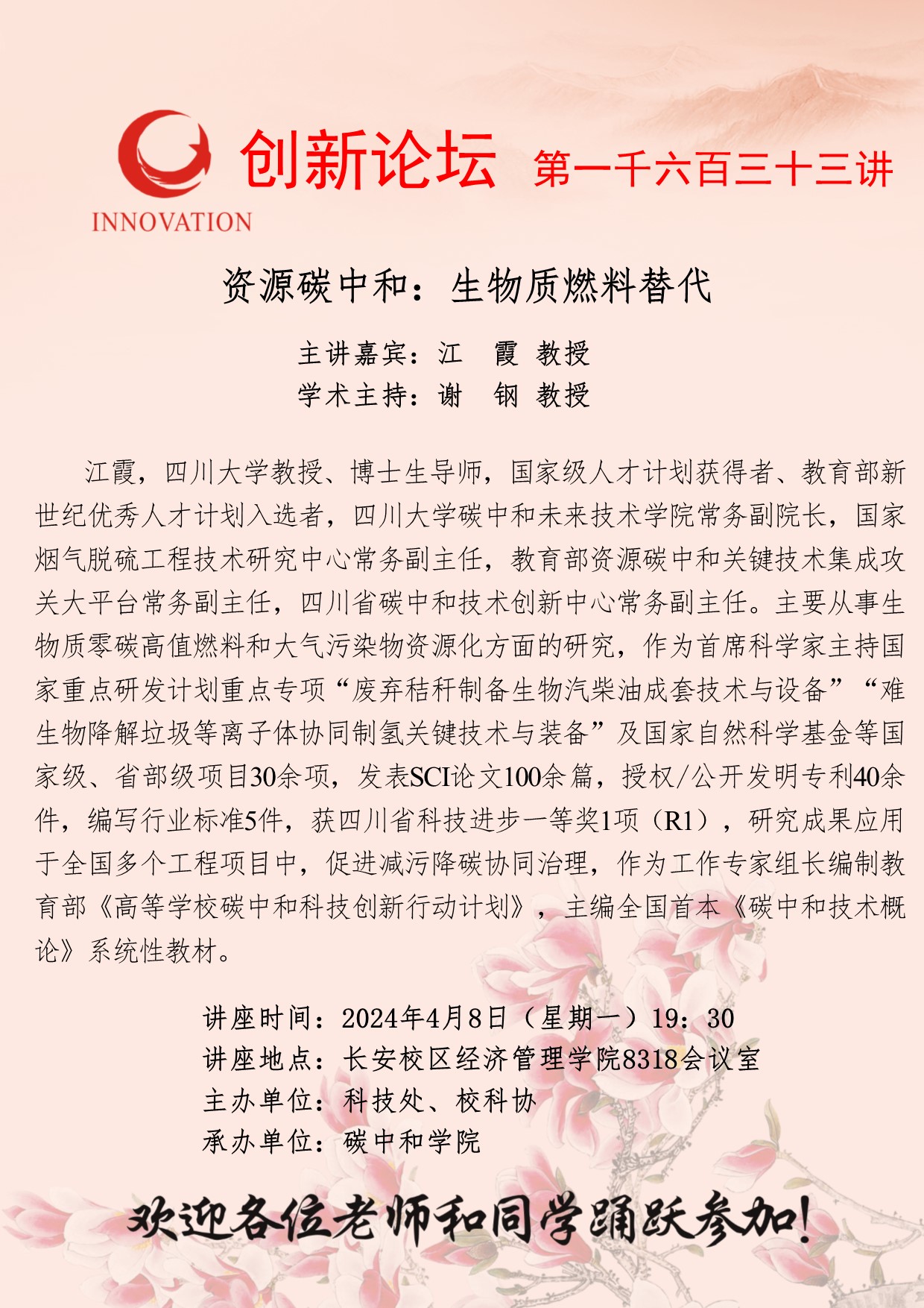 江霞 教授 必赢3003no1线路检测中心创新论坛第一千六百三十三讲:资源碳中和:生物质燃料替代 讲座时间 2024年4月8日(星期一)19:30 讲座地点 长安校区经济管理学院8318会议室 讲座人介绍 江霞 教授 讲座内容