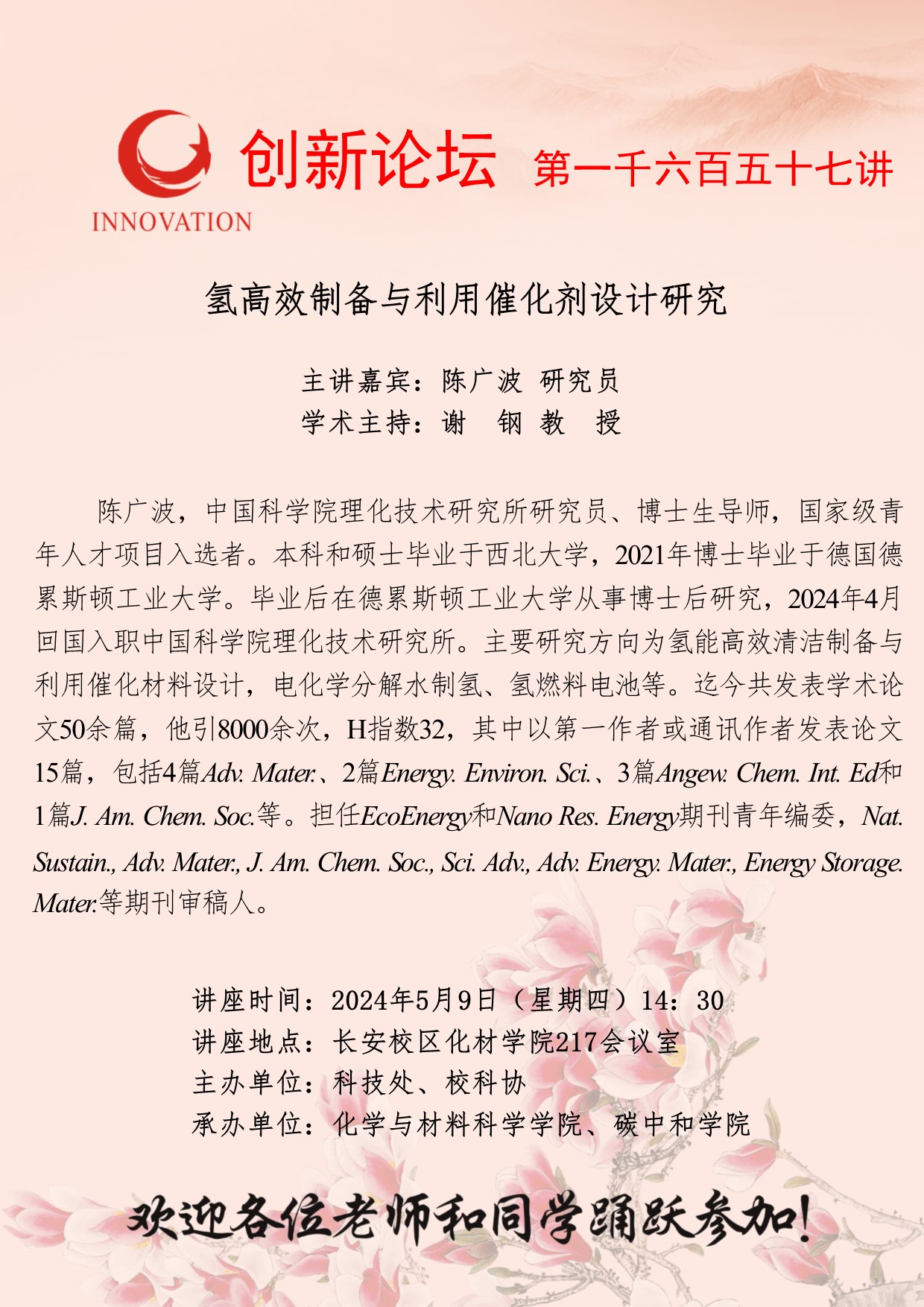 陈广波 研究员 必赢3003no1线路检测中心创新论坛第一千六百五十七讲:氢高效制备与利用催化剂设计研究 讲座时间 2024年5月9日(星期四)14:30 讲座地点 长安校区化材学院217会议室 讲座人介绍 陈广波 研究员 讲座内容