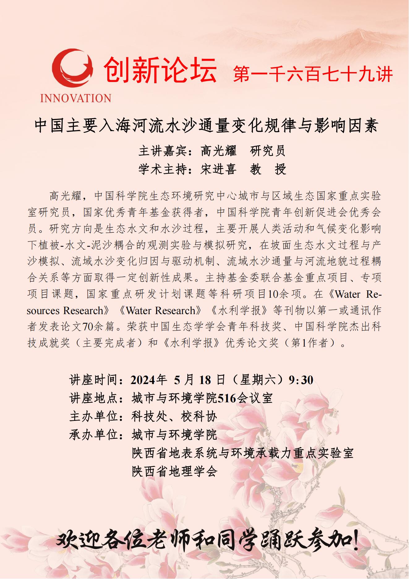 高光耀 研究员 必赢3003no1线路检测中心创新论坛第一千六百七十九讲:中国主要入海河流水沙通量变化规律与影响因素 讲座时间 2024年5月18日(星期六)9:30 讲座地点 城市与环境学院516会议室 讲座人介绍 高光耀 研究员 讲座内容