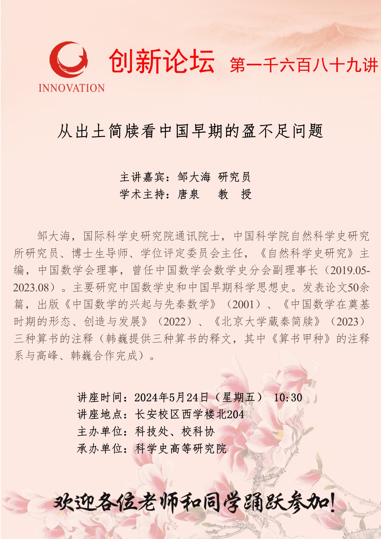 邹大海 研究员 必赢3003no1线路检测中心创新论坛第一千六百八十九讲:从出土简牍看中国早期的盈不足问题 讲座时间 2024年5月24日(星期五) 10:30 讲座地点 长安校区西学楼北204 讲座人介绍 邹大海 研究员 讲座内容