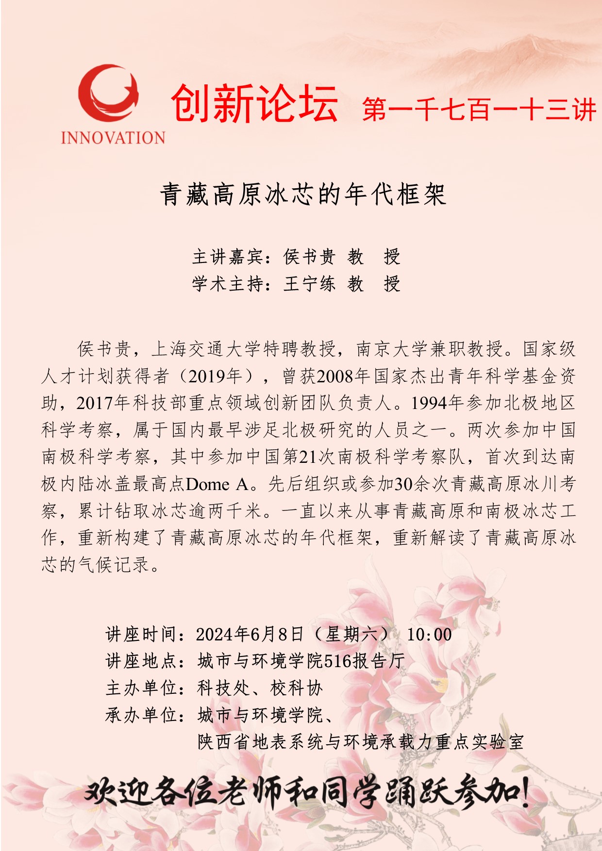 侯书贵 教授 必赢3003no1线路检测中心创新论坛第一千七百一十三讲:青藏高原冰芯的年代框架 讲座时间 2024年6月8日(星期六) 10:00 讲座地点 城市与环境学院516报告厅 讲座人介绍 侯书贵 教授 讲座内容