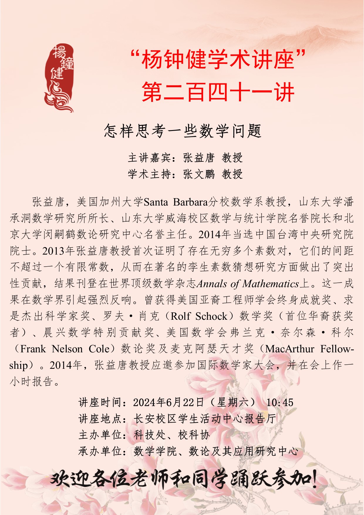 “杨钟健学术讲座”第二百四十一讲:怎样思考一些数学问题