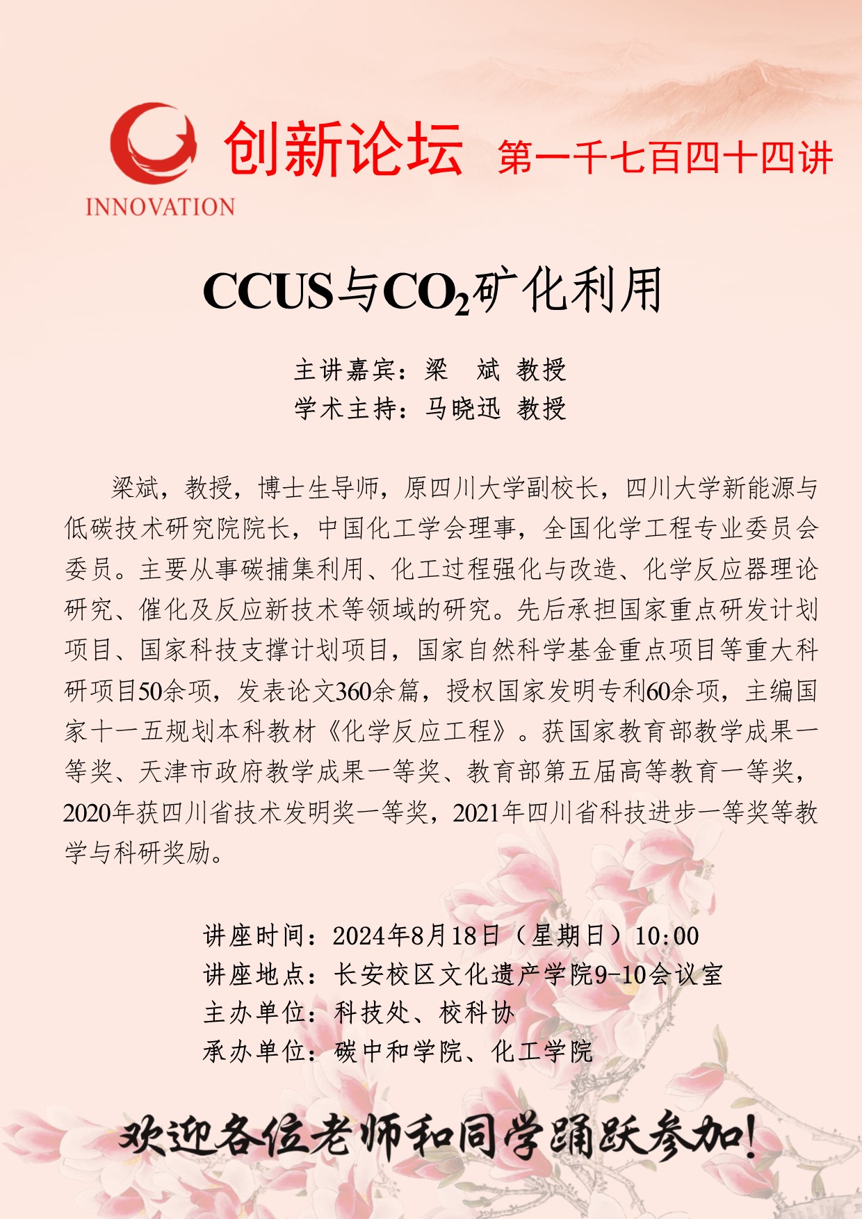 梁斌 教授 必赢3003no1线路检测中心创新论坛第一千七百四十四讲:CCUS与CO2矿化利用 讲座时间 2024年8月18日(星期日)10:00 讲座地点 长安校区文化遗产学院9-10会议室 讲座人介绍 梁斌 教授 讲座内容
