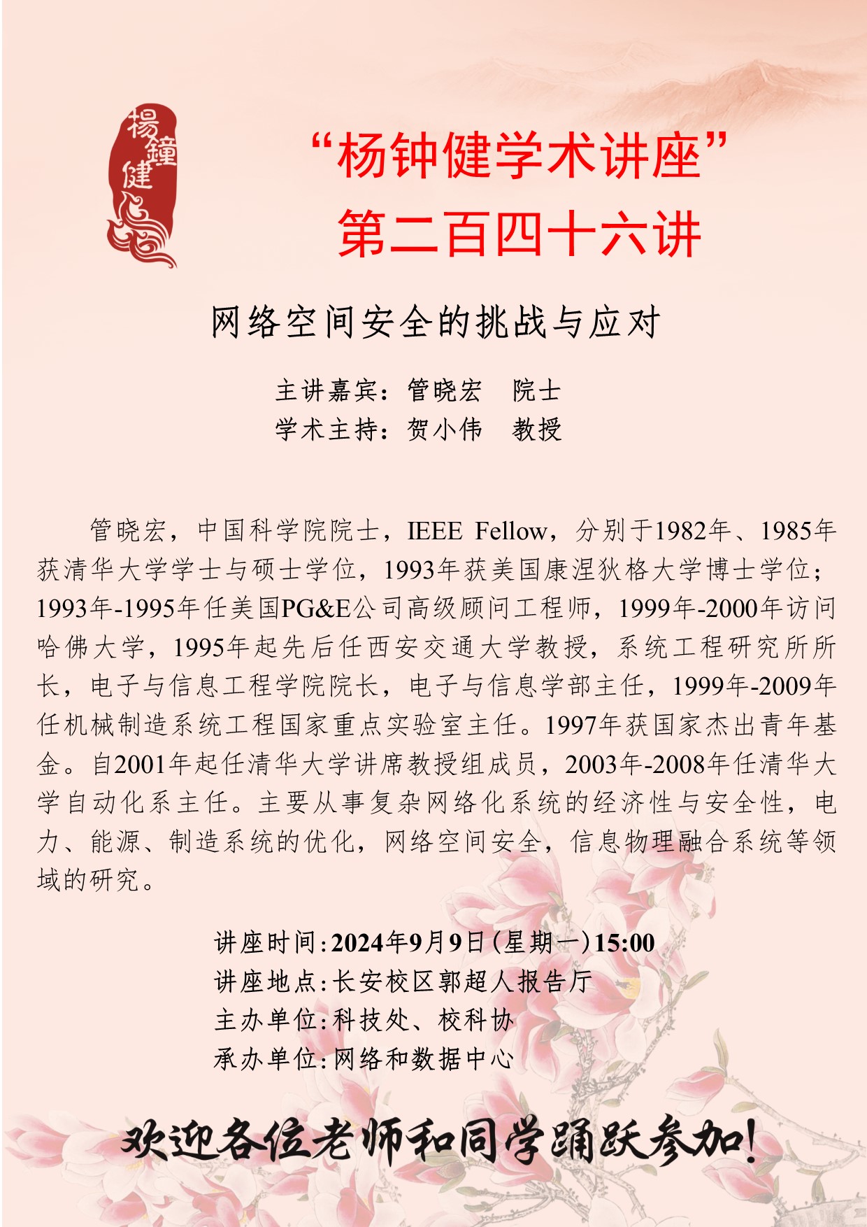 “杨钟健学术讲座”第二百四十六讲:网络空间安全的挑战与应对