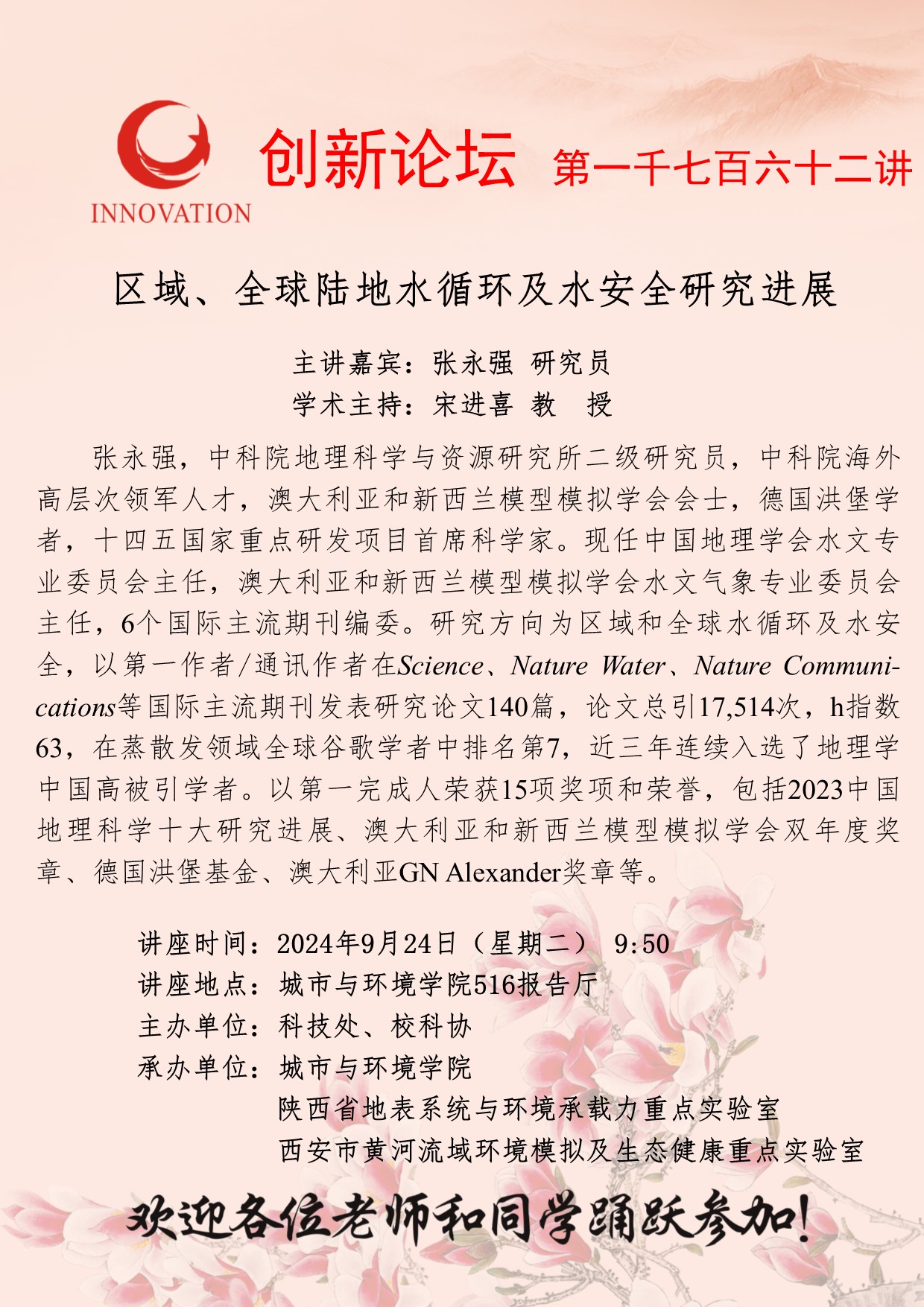 张永强 研究员 必赢3003no1线路检测中心创新论坛第一千七百六十二讲:区域、全球陆地水循环及水安全研究进展 讲座时间 2024年9月24日(星期二) 9:50 讲座地点 城市与环境学院516报告厅 讲座人介绍 张永强 研究员 讲座内容