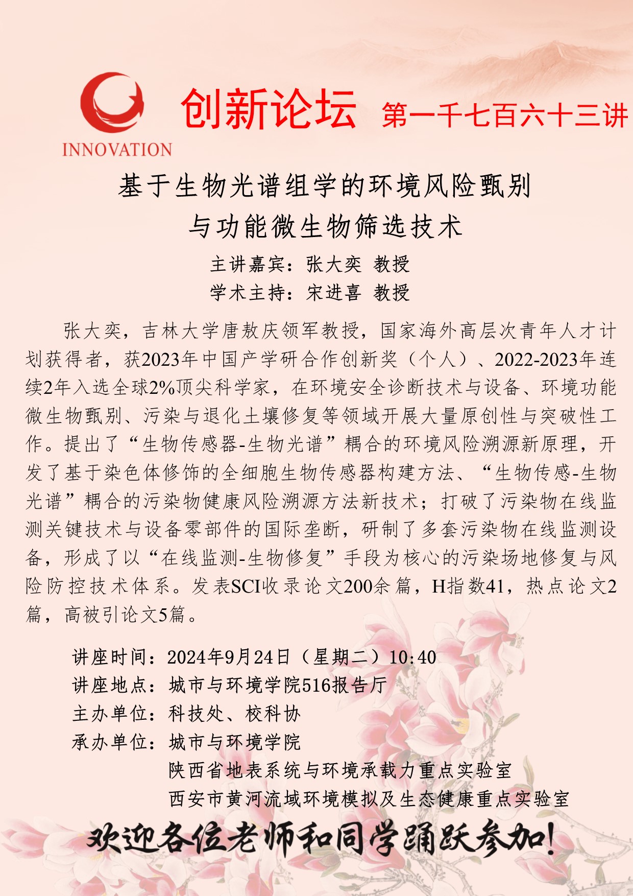 张大奕 教授 必赢3003no1线路检测中心创新论坛第一千七百六十三讲:基于生物光谱组学的环境风险甄别与功能微生物筛选技术 讲座时间 2024年9月24日(星期二)10:40 讲座地点 城市与环境学院516报告厅 讲座人介绍 张大奕 教授 讲座内容