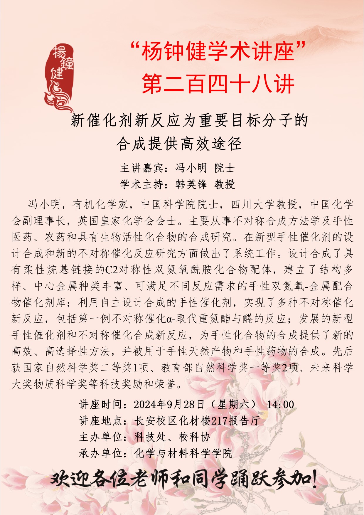 “杨钟健学术讲座”第二百四十八讲: 新催化剂新反应为重要目标分子的合成提供高效途径