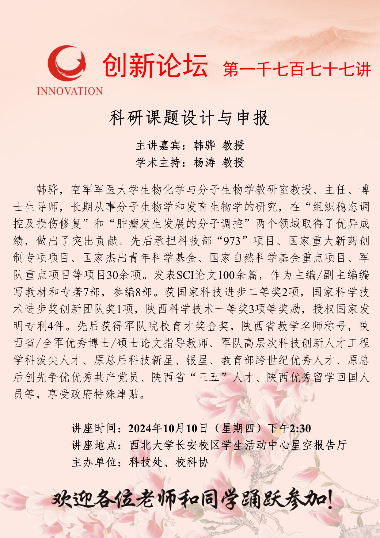韩骅 教授 必赢3003no1线路检测中心创新论坛第一千七百七十七讲:科研课题设计与申报 讲座时间 2024年10月10日(星期四)下午2:30 讲座地点 必赢3003no1线路检测中心长安校区学生活动中心星空报告厅 讲座人介绍 韩骅 教授 讲座内容