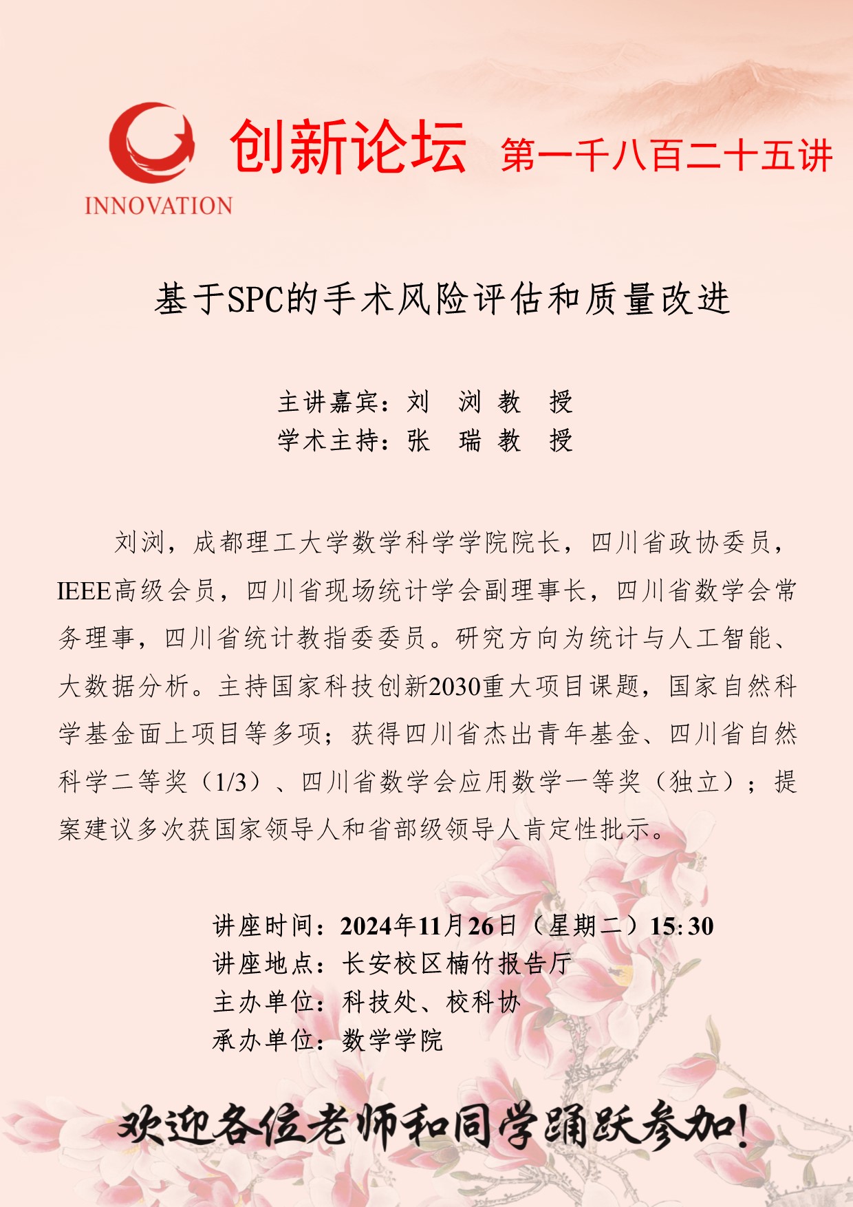 刘浏 教授 必赢3003no1线路检测中心创新论坛第一千八百二十五讲:基于SPC的手术风险评估和质量改进 讲座时间 2024年11月26日(星期二)15:30 讲座地点 长安校区楠竹报告厅 讲座人介绍 刘浏 教授 讲座内容