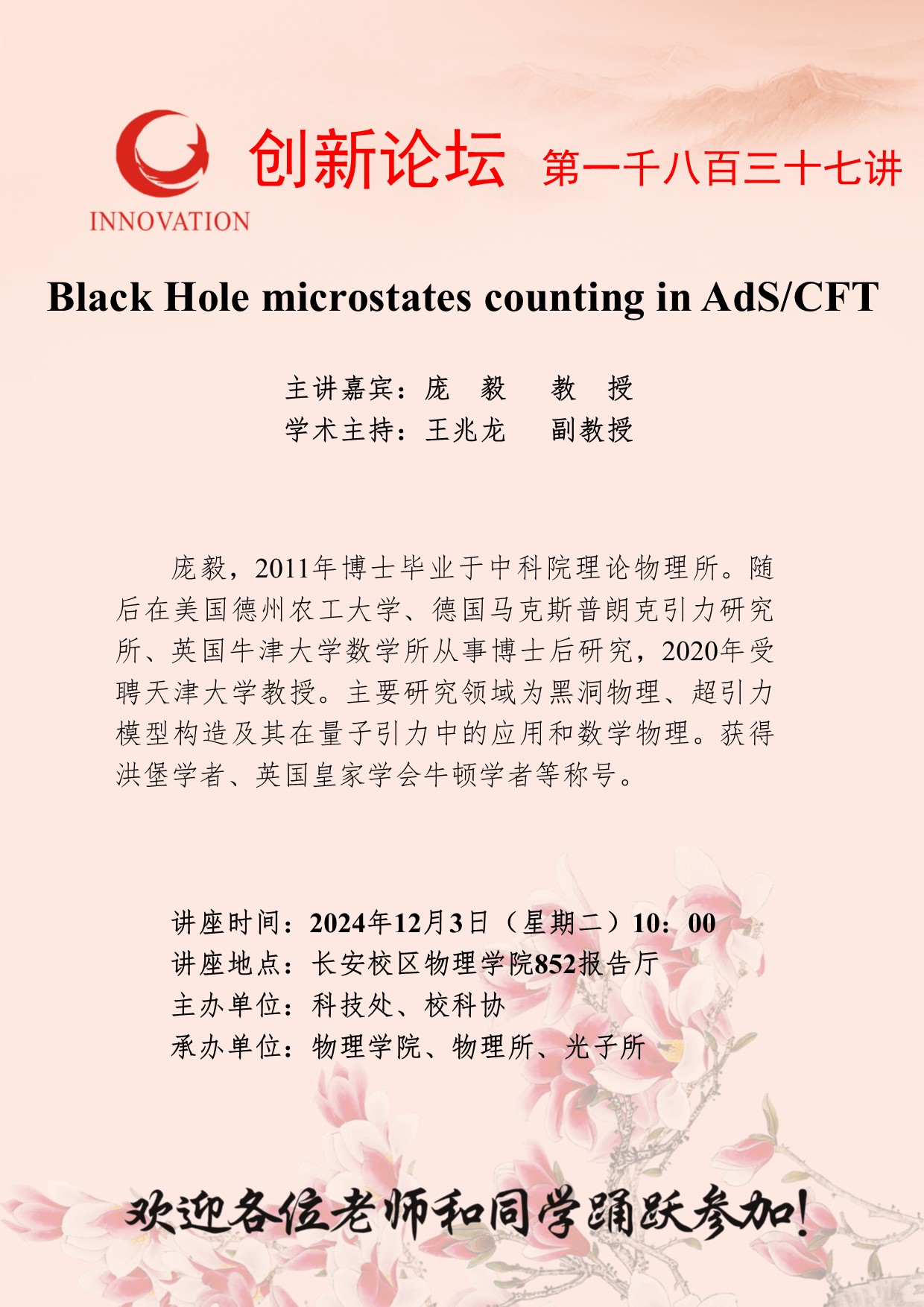 庞毅 教授 必赢3003no1线路检测中心创新论坛第一千八百三十七讲:Black Hole microstates counting in AdS/CFT 讲座时间 2024年12月3日(星期二)10:00 讲座地点 长安校区物理学院852报告厅 讲座人介绍 庞毅 教授 讲座内容