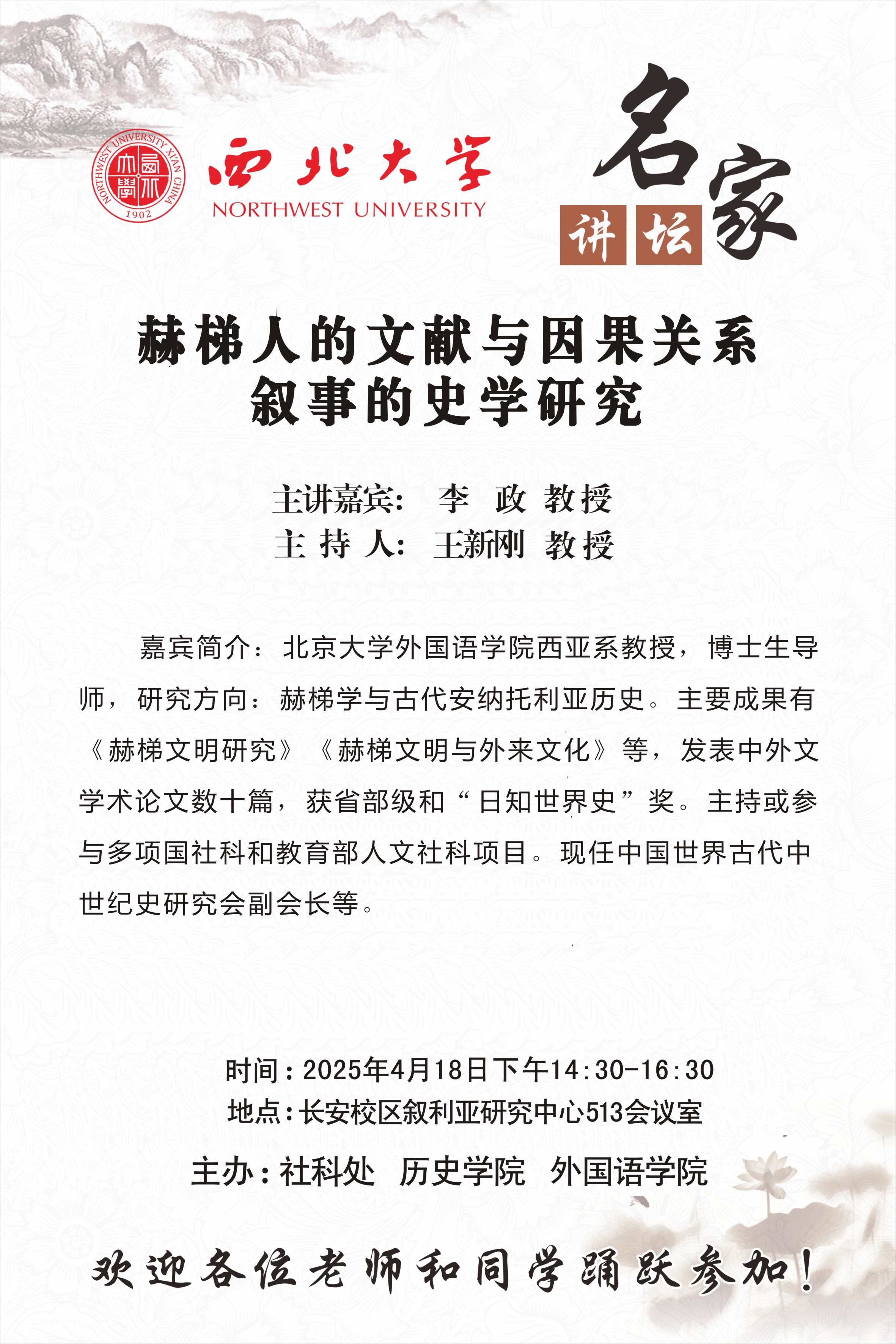 名家讲坛:赫梯人的文献与因果关系叙事的史学研究