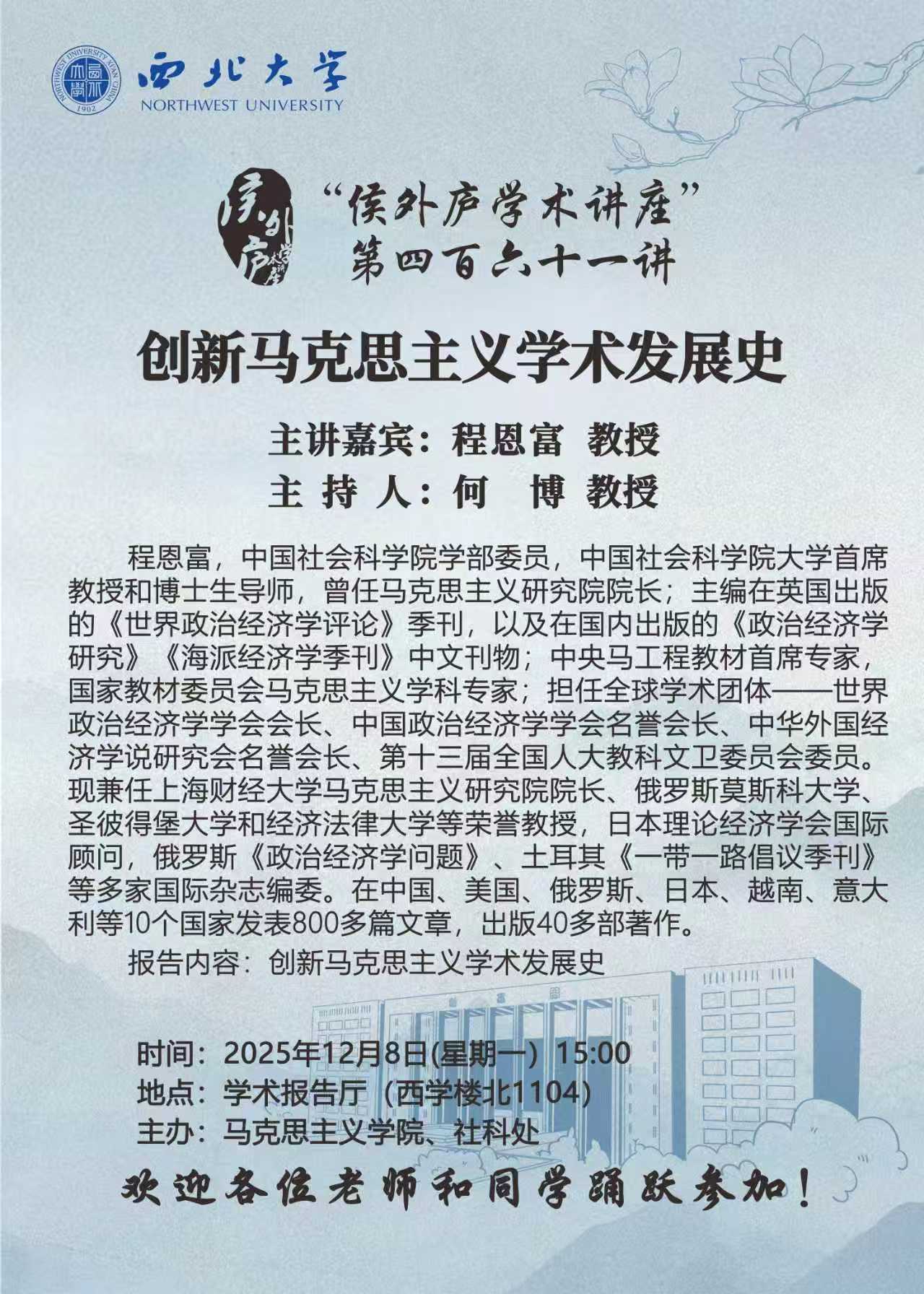 “侯外庐学术讲座” 第四百六十一讲:创新马克思主义学术发展史