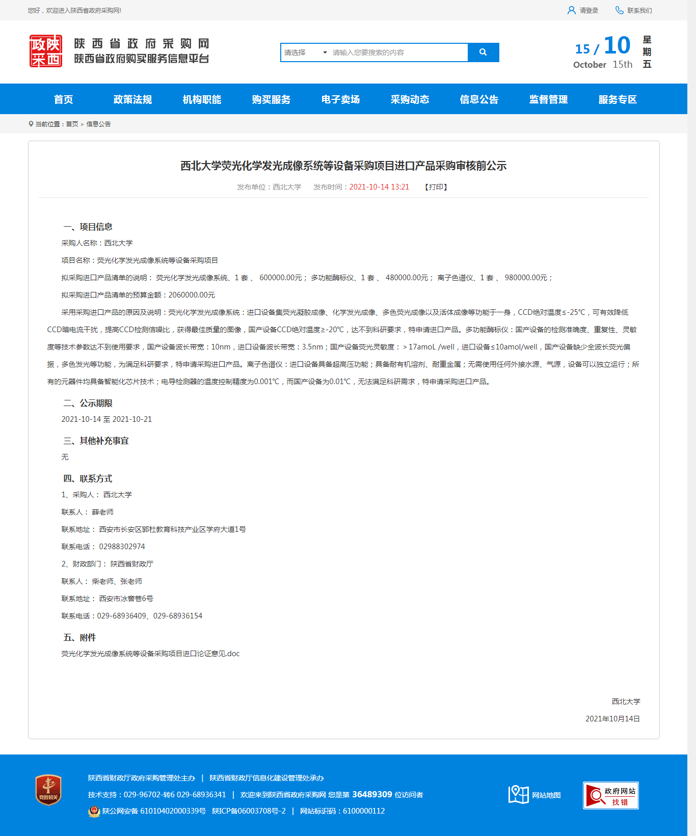 必赢3003no1线路检测中心荧光化学发光成像系统等设备采购项目进口产品采购审核前公示 作者: 编辑:采购与招标办公室 时间:2021-10-15 原公告地址:http://www.ccgp-shaanxi.gov.cn/notice/noticeDetail.do?noticeguid=8a85be327c20d508017c7d292ccd6e1a