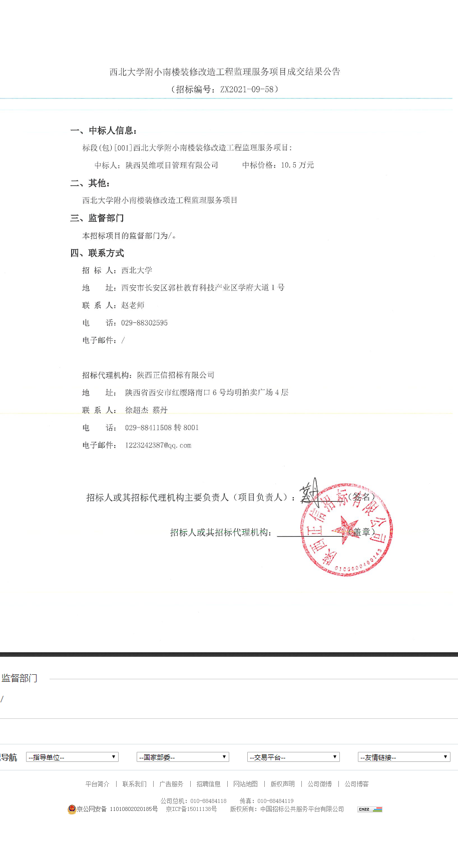 必赢3003no1线路检测中心附小南楼装修改造工程监理服务项目成交结果公告