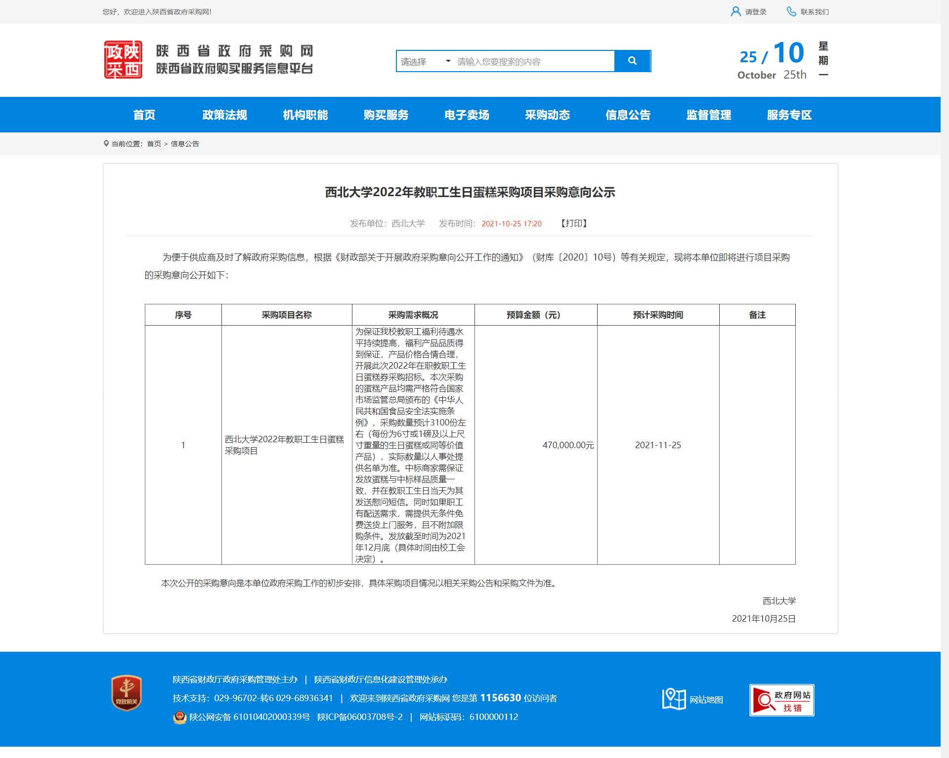 必赢3003no1线路检测中心2022年教职工生日蛋糕采购项目采购意向公示 作者: 编辑:薛利娟 时间:2021-10-25 原公告地址:http://www.ccgp-shaanxi.gov.cn/notice/noticeDetail.do?noticeguid=8a85be337c20d0b4017cb6bfc9ae33ff