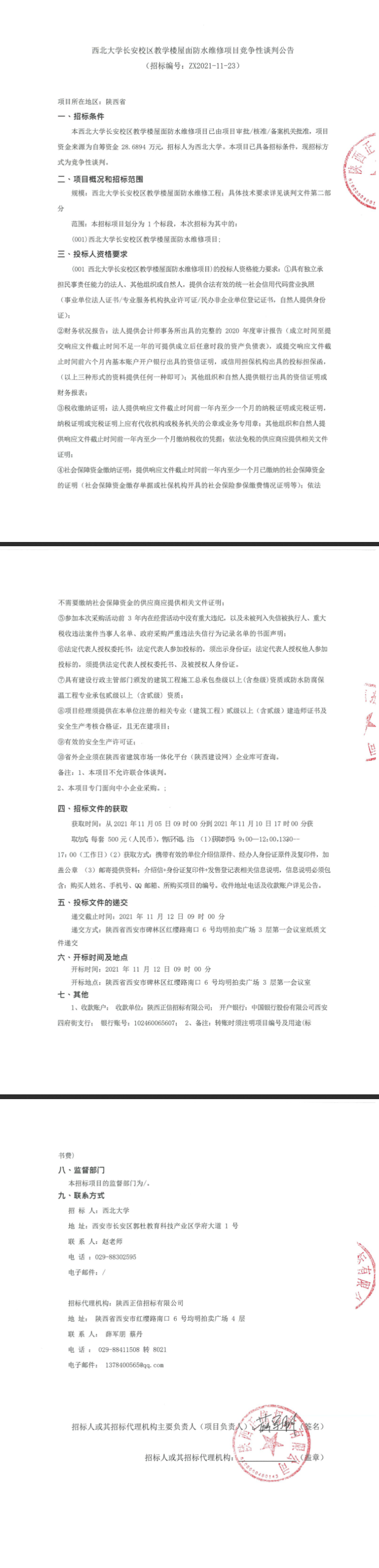 必赢3003no1线路检测中心长安校区教学楼屋面防水维修项目竞争性谈判公告
