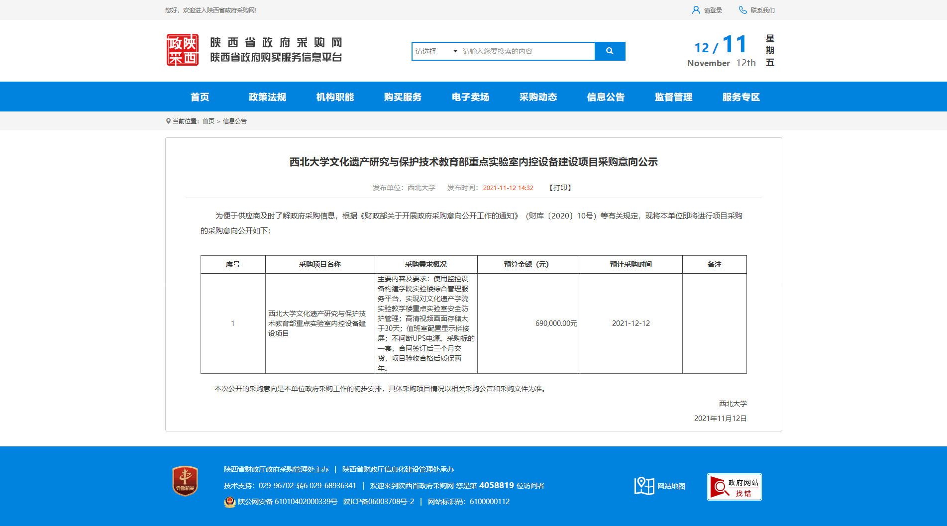 必赢3003no1线路检测中心文化遗产研究与保护技术教育部重点实验室内控设备建设项目采购意向公示
