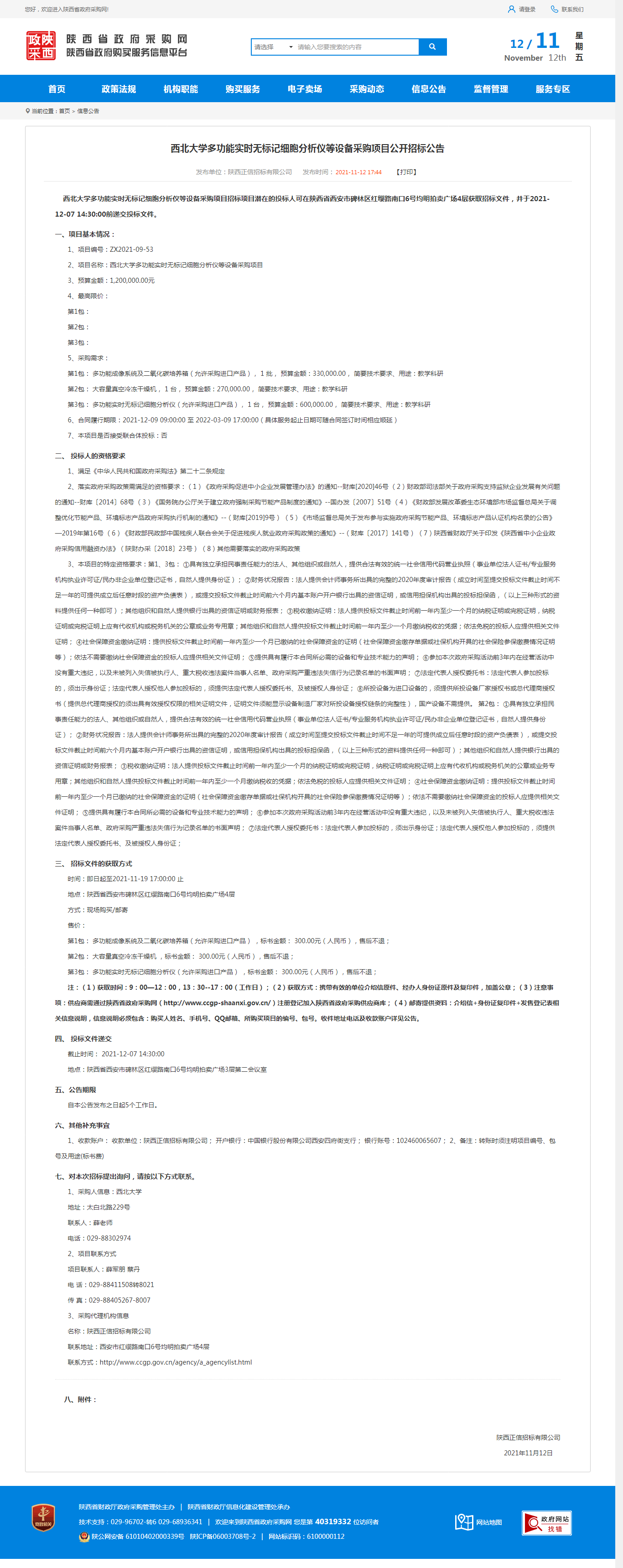 必赢3003no1线路检测中心多功能实时无标记细胞分析仪等设备采购项目公开招标公告 作者: 编辑:薛利娟 时间:2021-11-12 原公告网址:http://www.ccgp-shaanxi.gov.cn/notice/noticeDetail.do?noticeguid=8a85be337cefc032017d13792f9f29a1