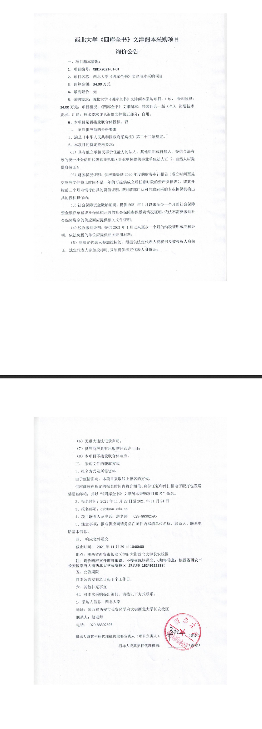 必赢3003no1线路检测中心《四库全书》文津阁本采购项目询价公告