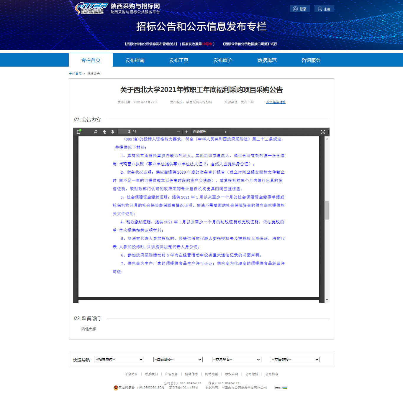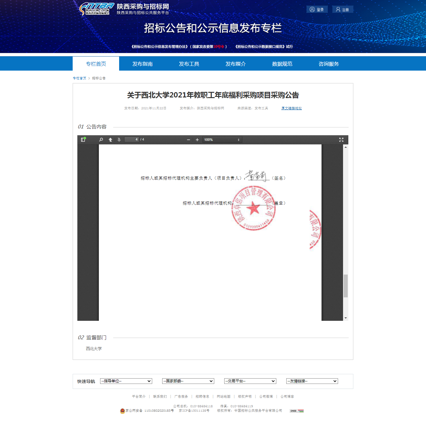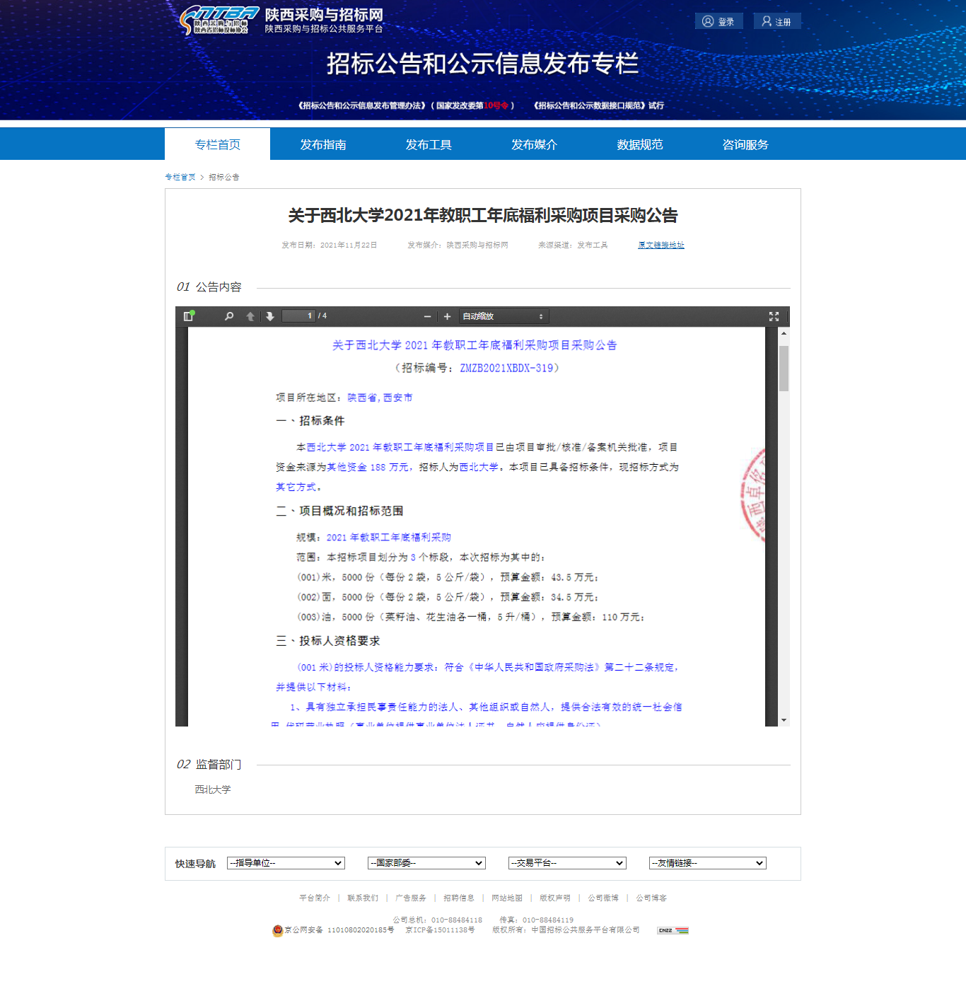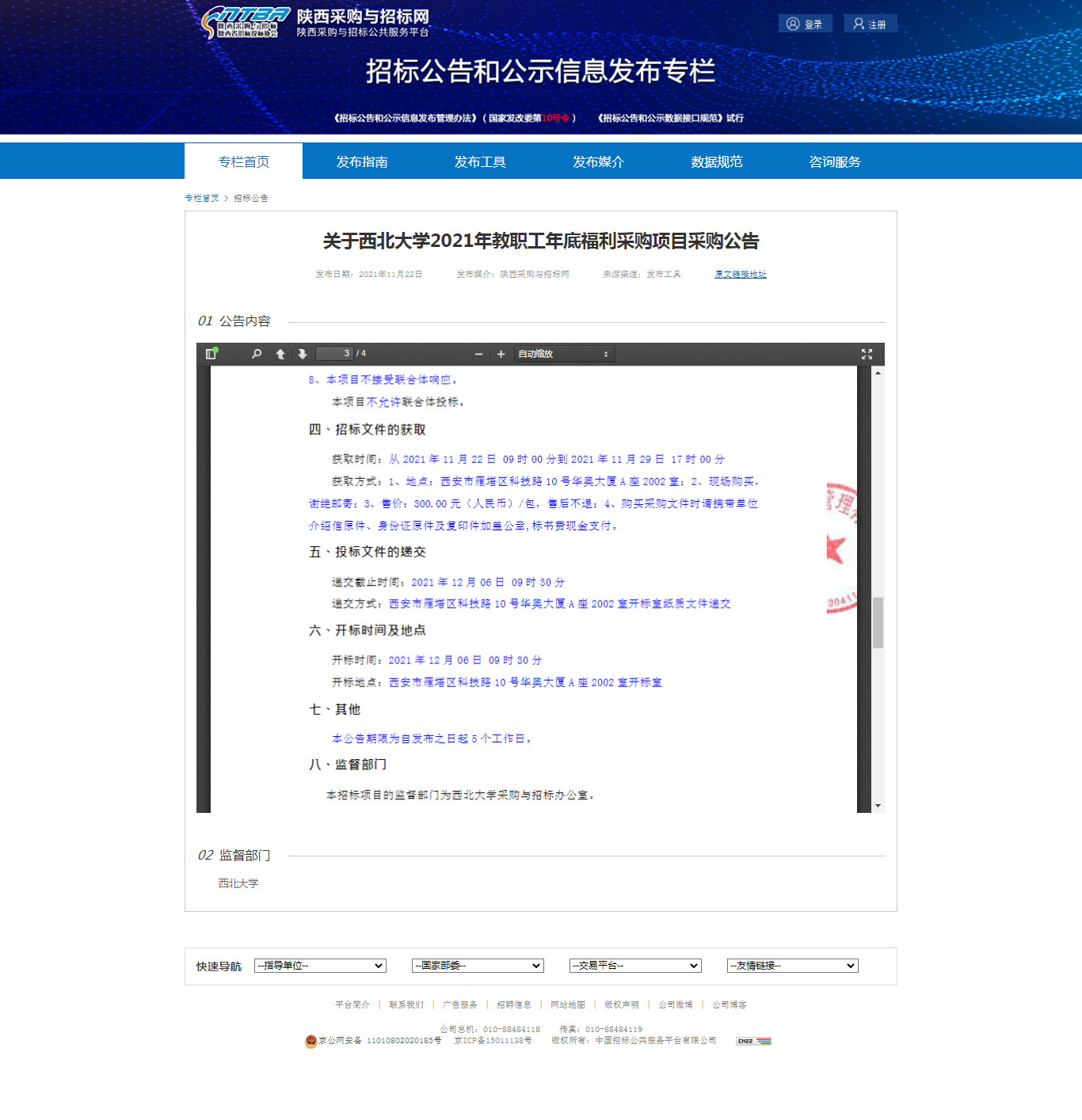 关于必赢3003no1线路检测中心2021年教职工年底福利采购项目采购公告 作者: 编辑:薛利娟 时间:2021-11-22 原公告网址:http://bulletin.sntba.com/biddingBulletin/2021-11-22/366992.html