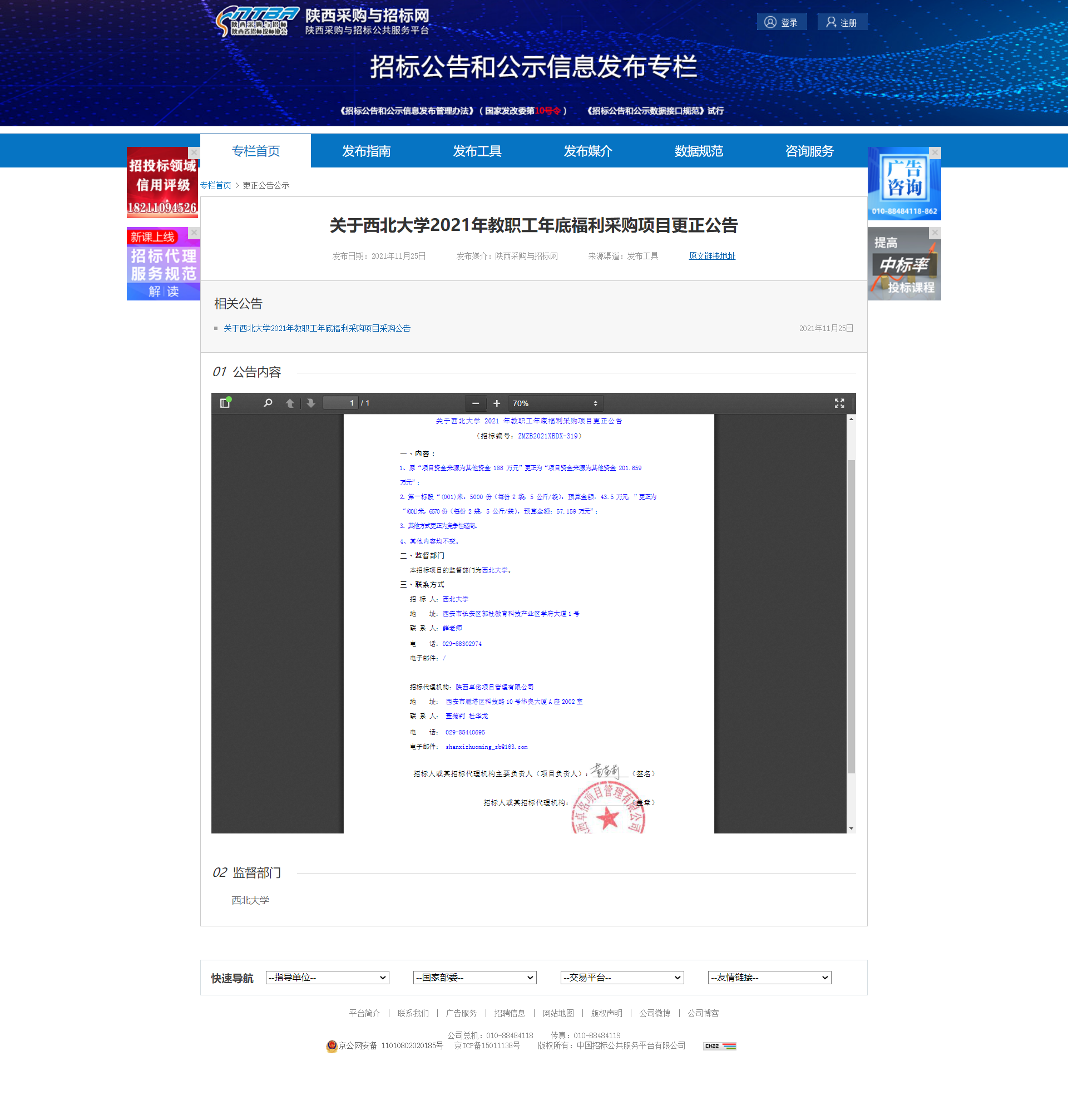 关于必赢3003no1线路检测中心2021年教职工年底福利采购项目更正公告 作者: 编辑:薛利娟 时间:2021-11-25 原公告网址:http://bulletin.sntba.com/changeBulletin/2021-11-25/368458.html