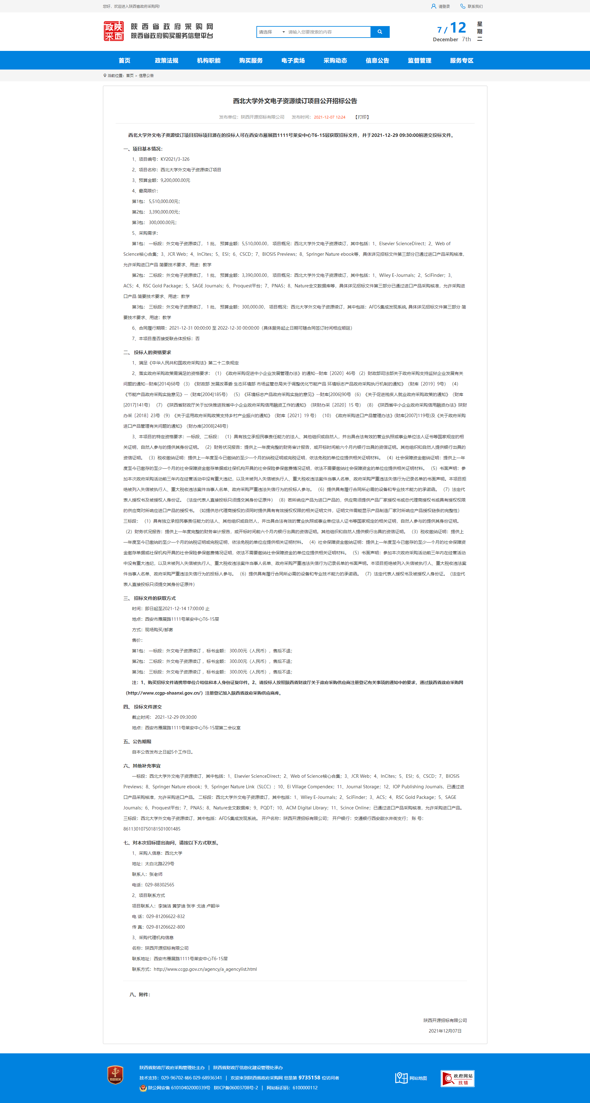 必赢3003no1线路检测中心外文电子资源续订项目公开招标公告