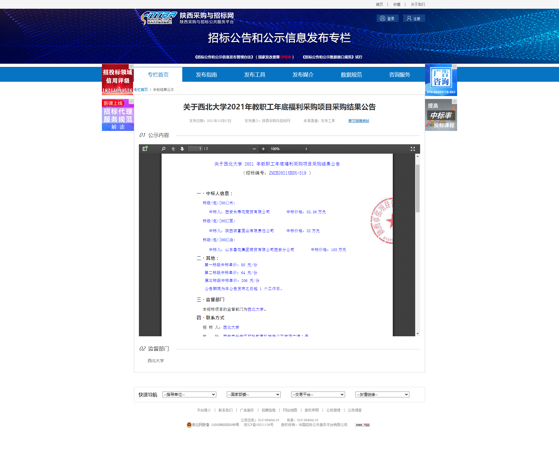 关于必赢3003no1线路检测中心2021年教职工年底福利采购项目采购结果公告 作者: 编辑:薛利娟 时间:2021-12-08 原公告链接:http://bulletin.sntba.com/resultBulletin/2021-12-07/372936.html