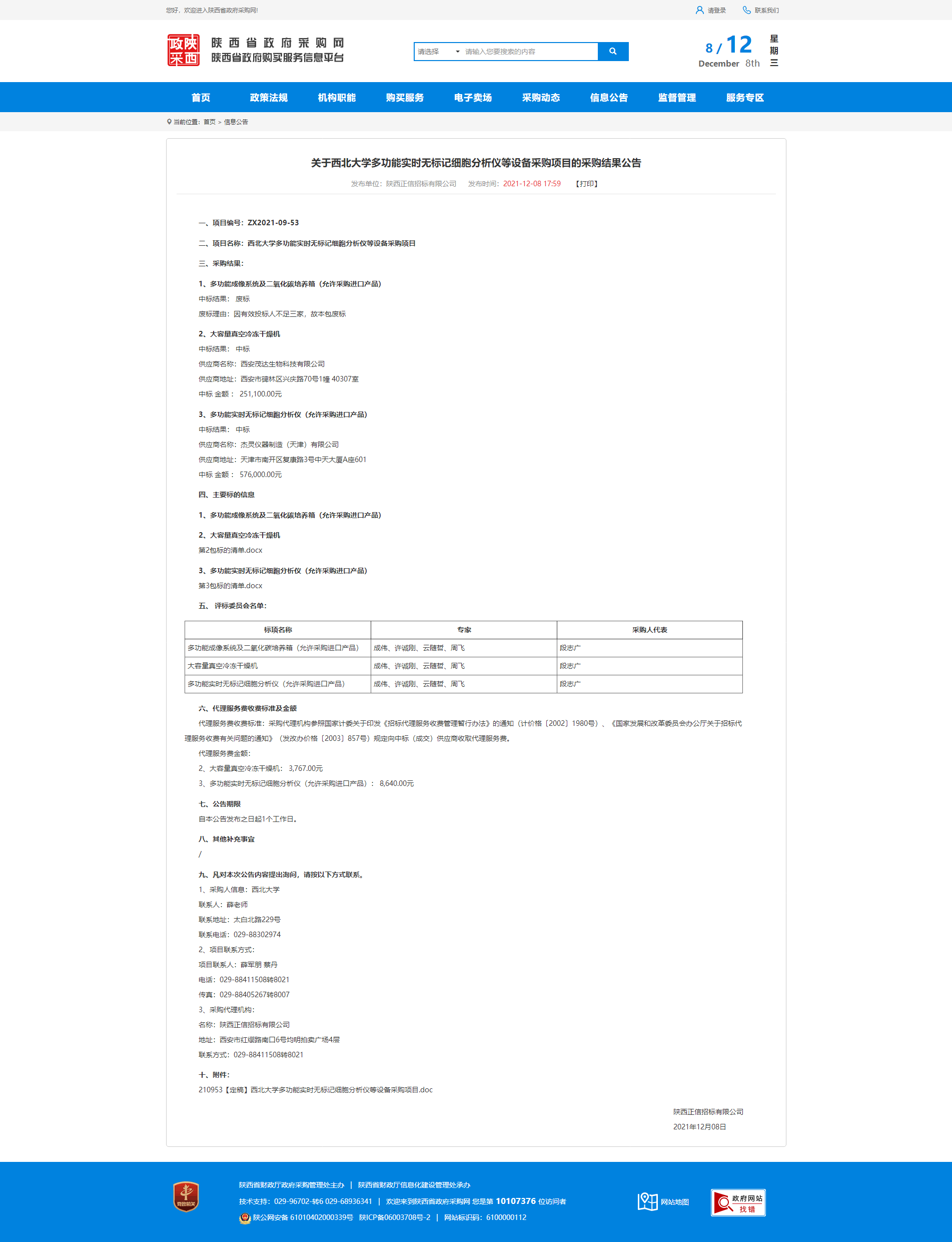 关于必赢3003no1线路检测中心多功能实时无标记细胞分析仪等设备采购项目的采购结果公告