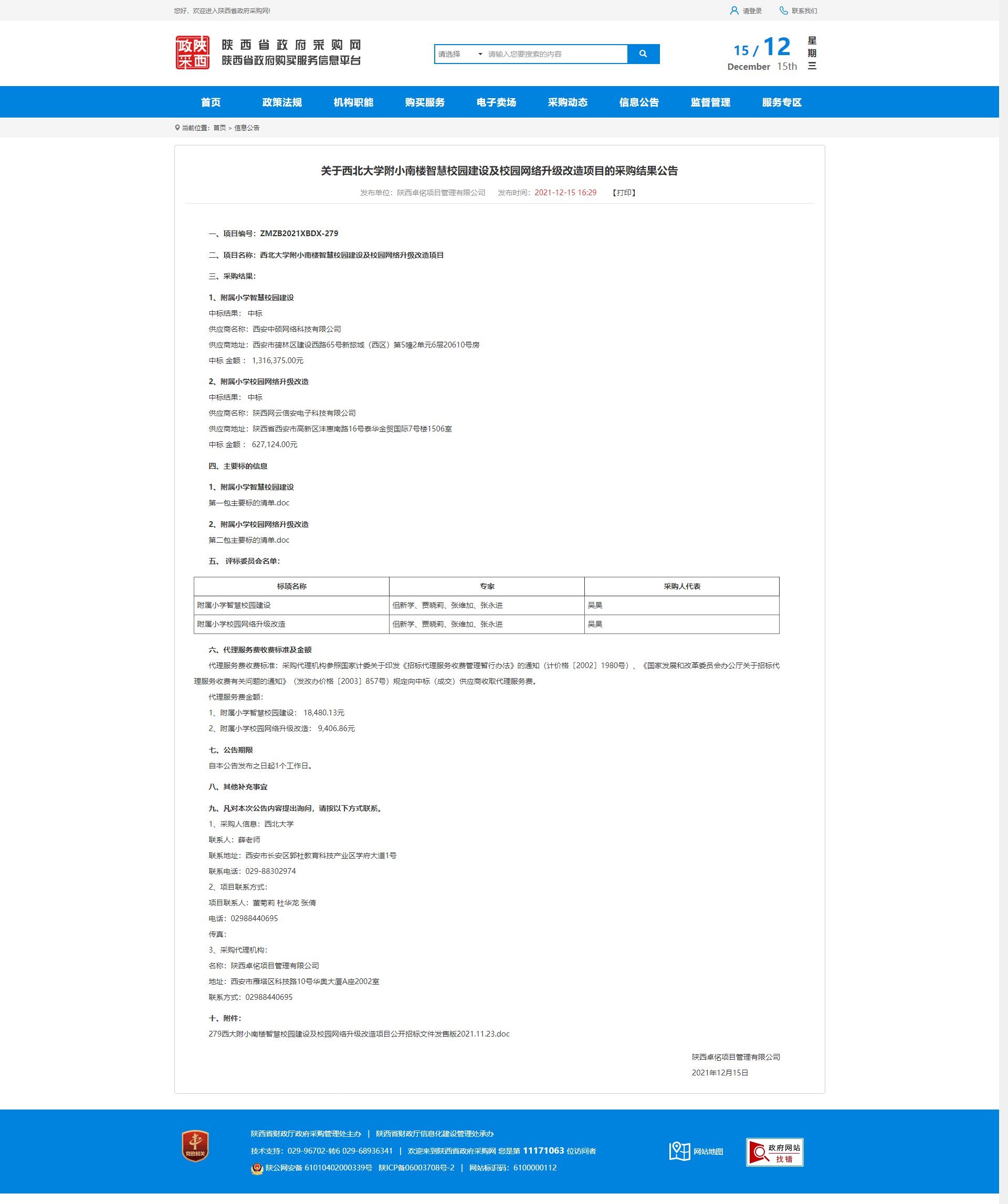 关于必赢3003no1线路检测中心附小南楼智慧校园建设及校园网络升级改造项目的采购结果公告 作者: 编辑:薛利娟 时间:2021-12-15 原公告链接:http://www.ccgp-shaanxi.gov.cn/notice/noticeDetail.do?noticeguid=8a85be317dacefac017dbd0b5be51ce5