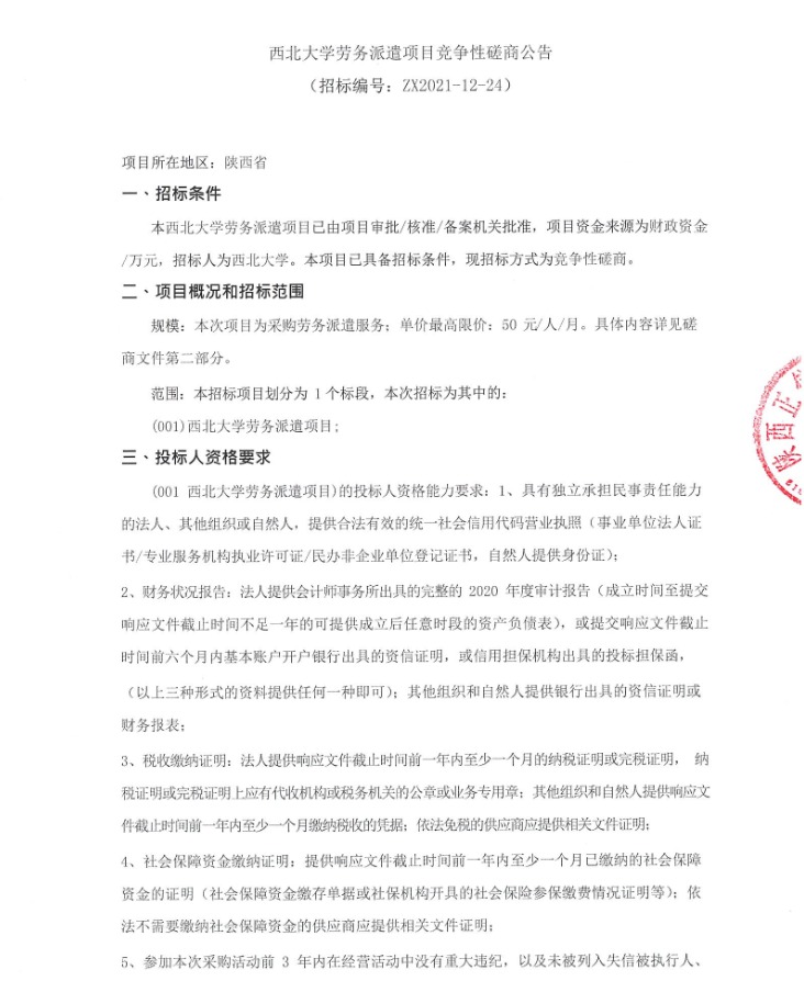 必赢3003no1线路检测中心劳务派遣项目竞争性磋商公告